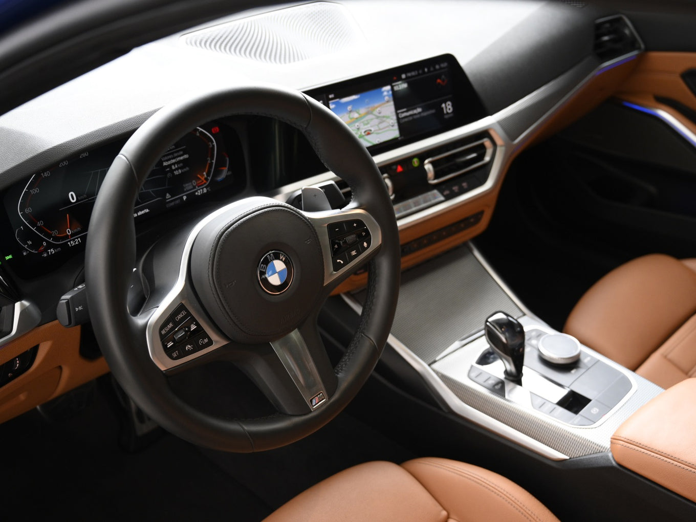 Veículo com rodas de liga leve, faróis em led, teto solar, bancos em couro Cognac, painel TFT e sistema de som Harman Kardon.