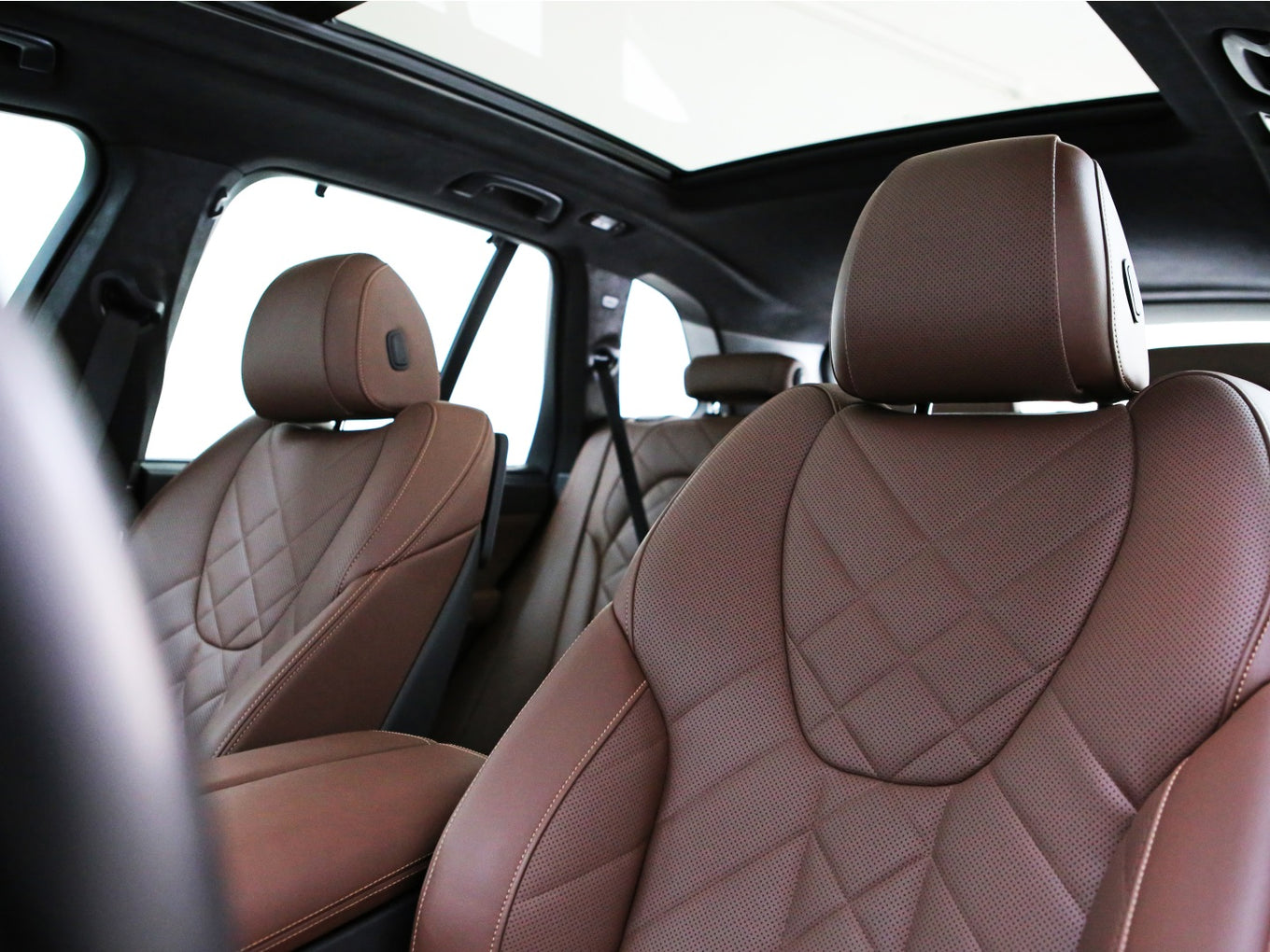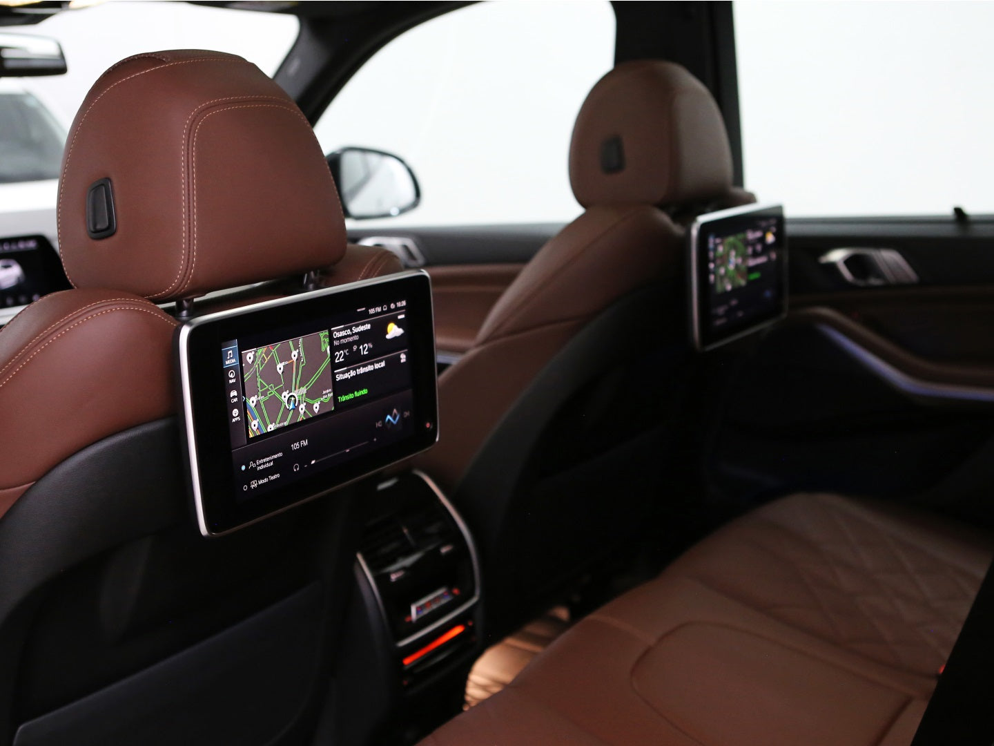 Veículo com rodas de liga leve diamantadas, faróis Bmw Laser, teto solar panorâmico, bancos em couro Mocha, painel TFT e telas de entretenimento traseiras.