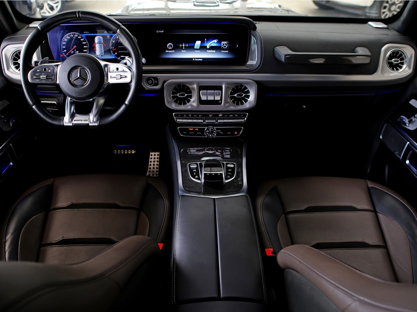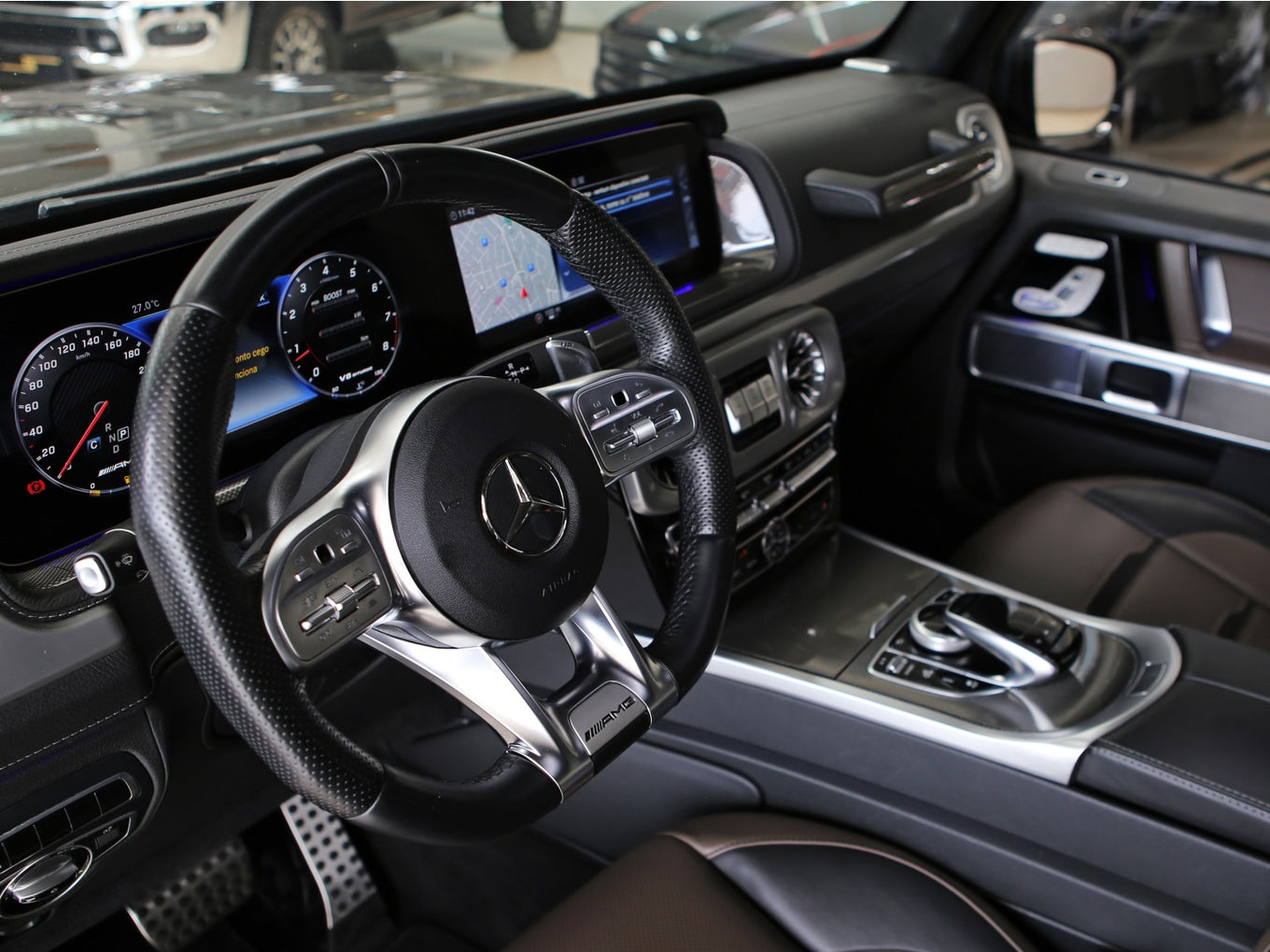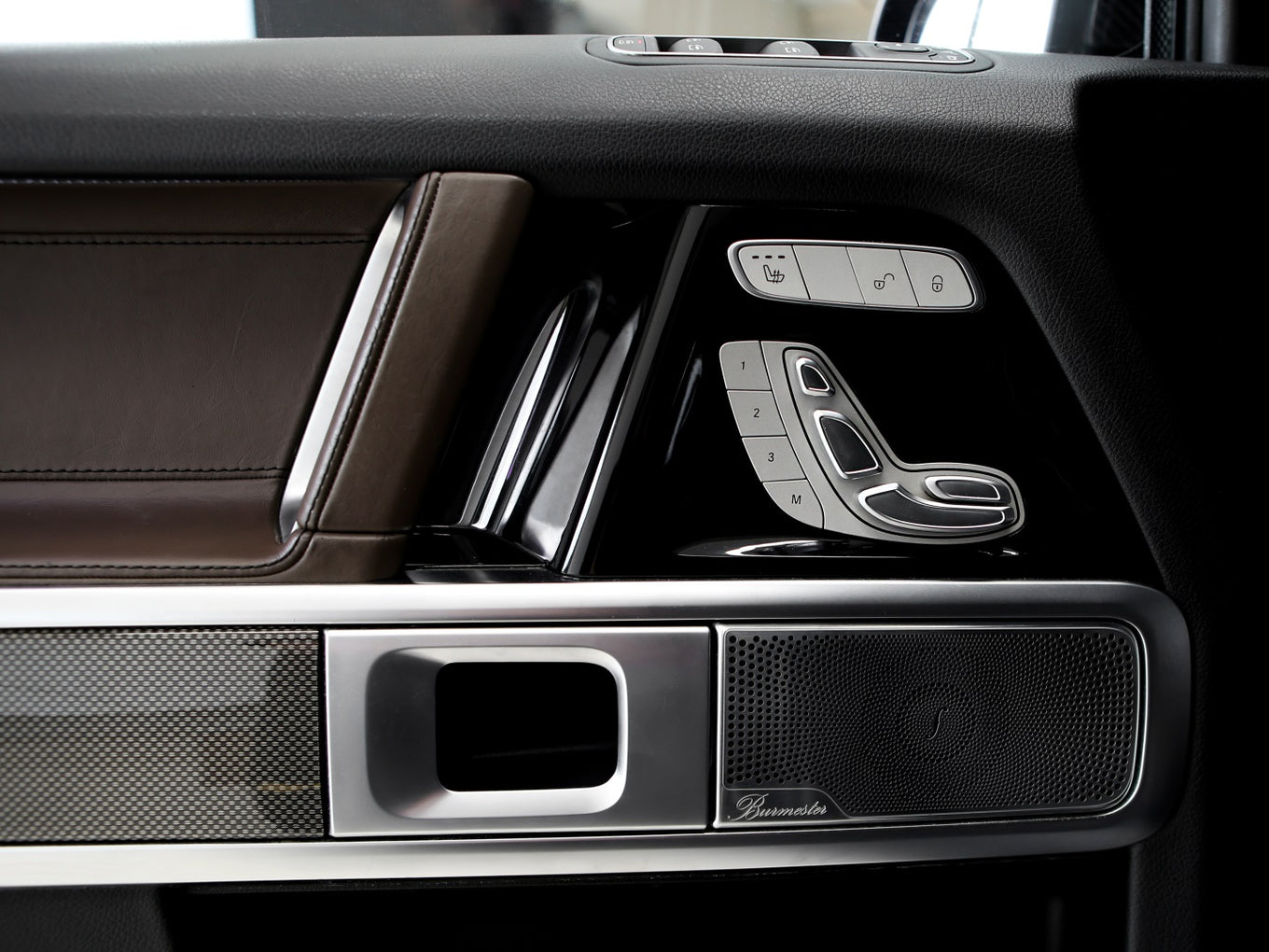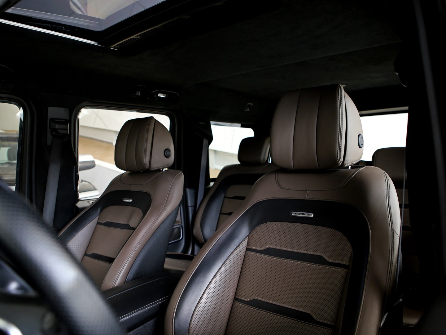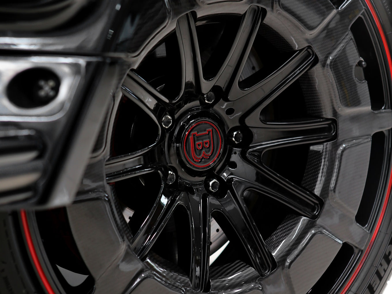 Veículo blindado Carbon, vidros AGP com Kit Brabus Rocket Edition 900, rodas exclusivas, acabamentos em fibra de carbono, teto solar, bancos em couro bicolor Mocha e preto, painel TFT e sistema de som Burmester.