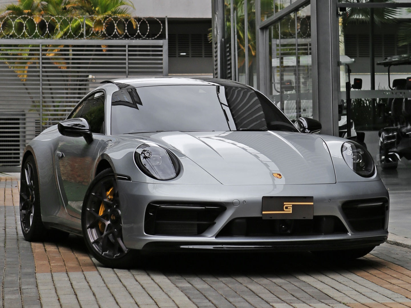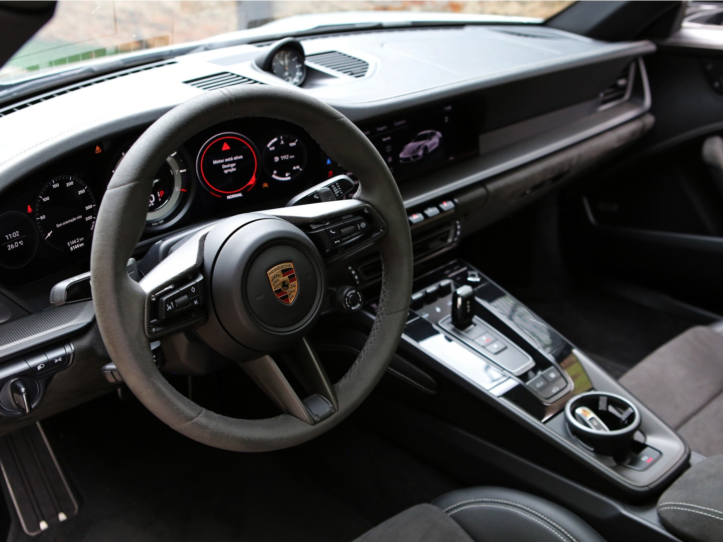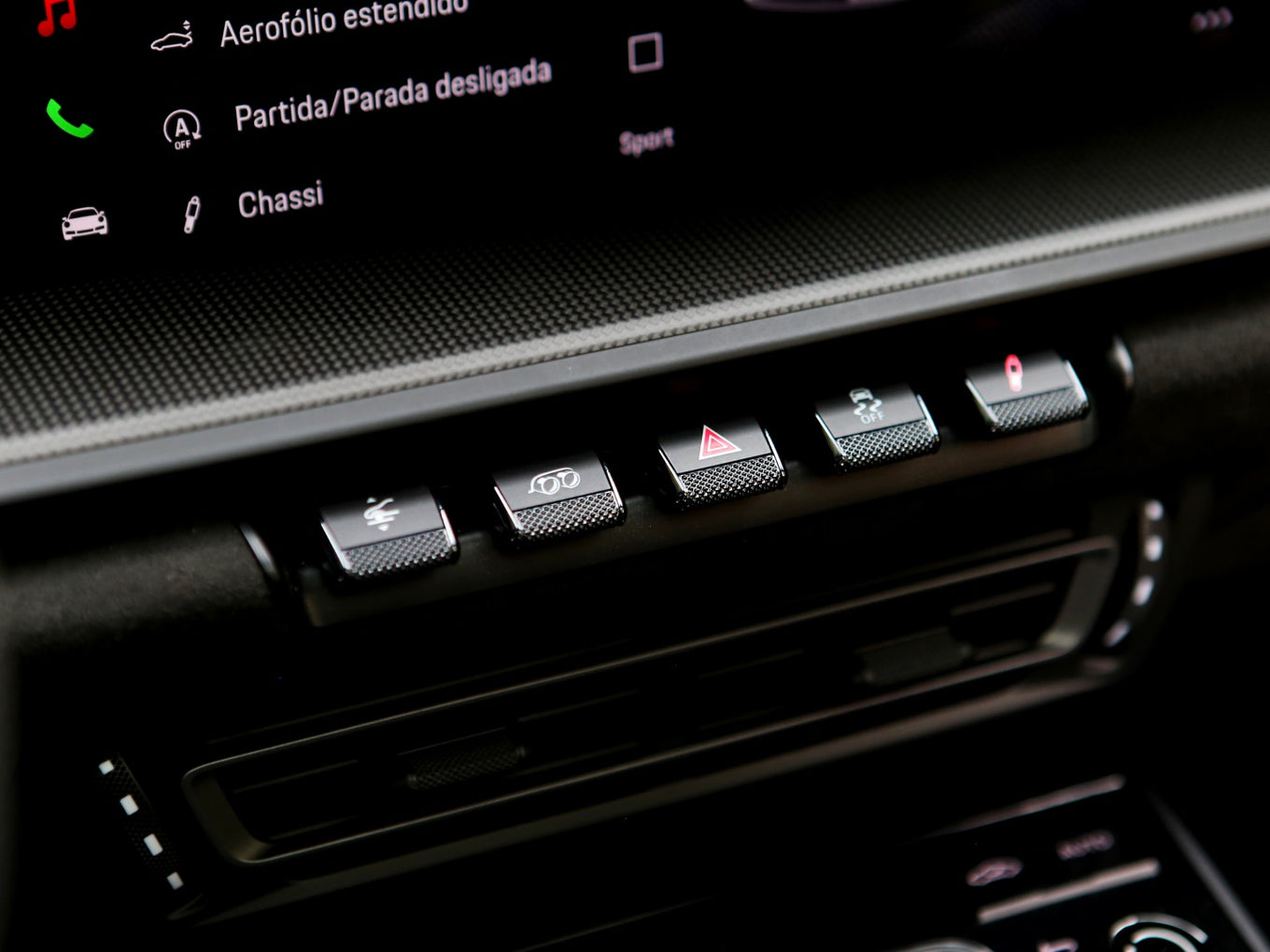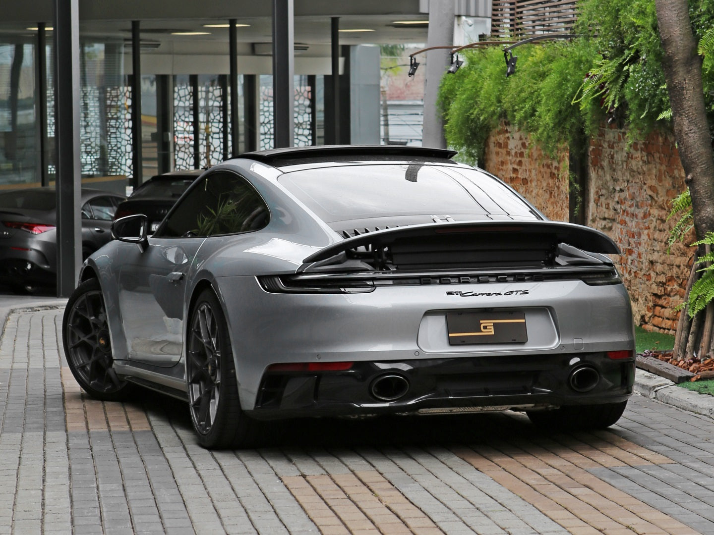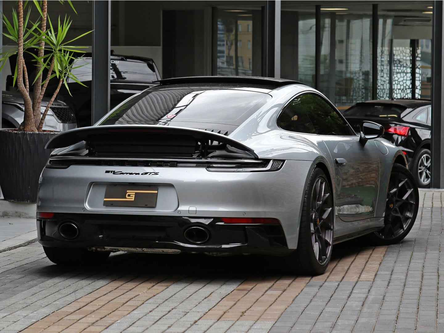 Veículo com PPF Full, rodas GT3, lift dianteiro, teto solar em vidro, bancos em couro e alcântara exclusivos GTS, pacote Sport Chrono Porsche Design e sistema de som Bose.