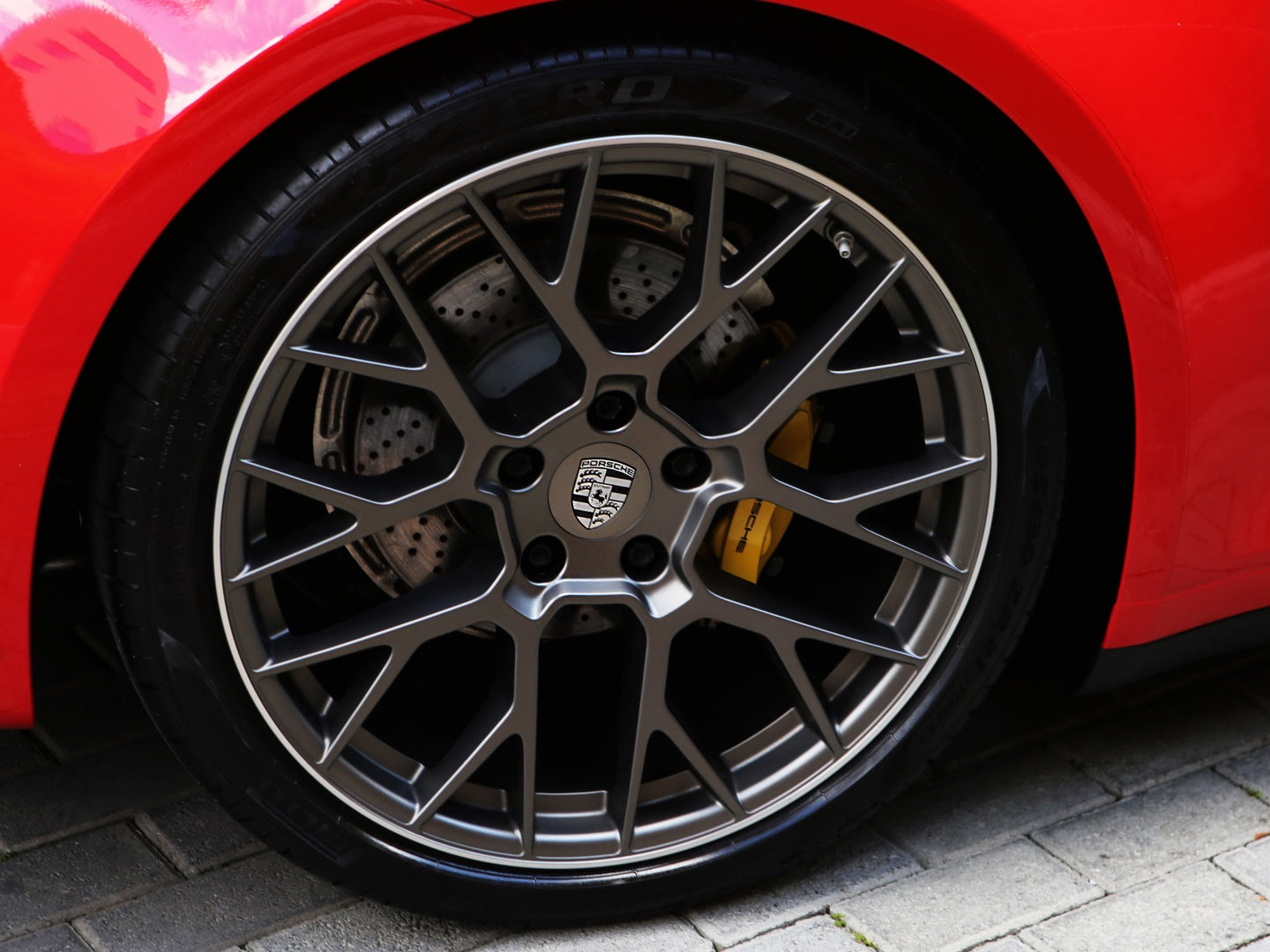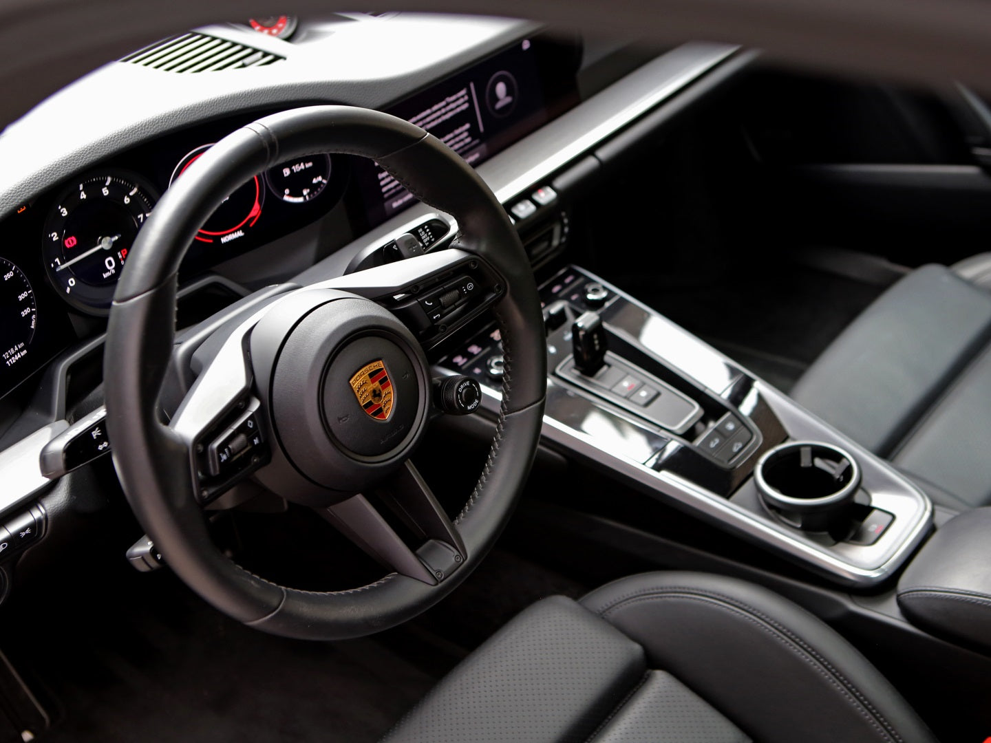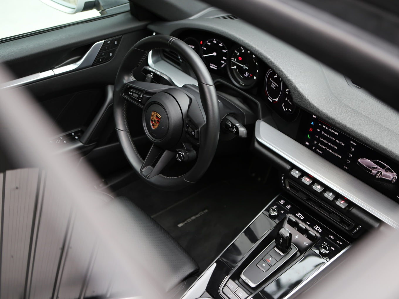 Veículo com rodas RS Spyder, teto solar, bancos em couro 18 vias, pacote Sport Chrono e sistema de som Bose.
