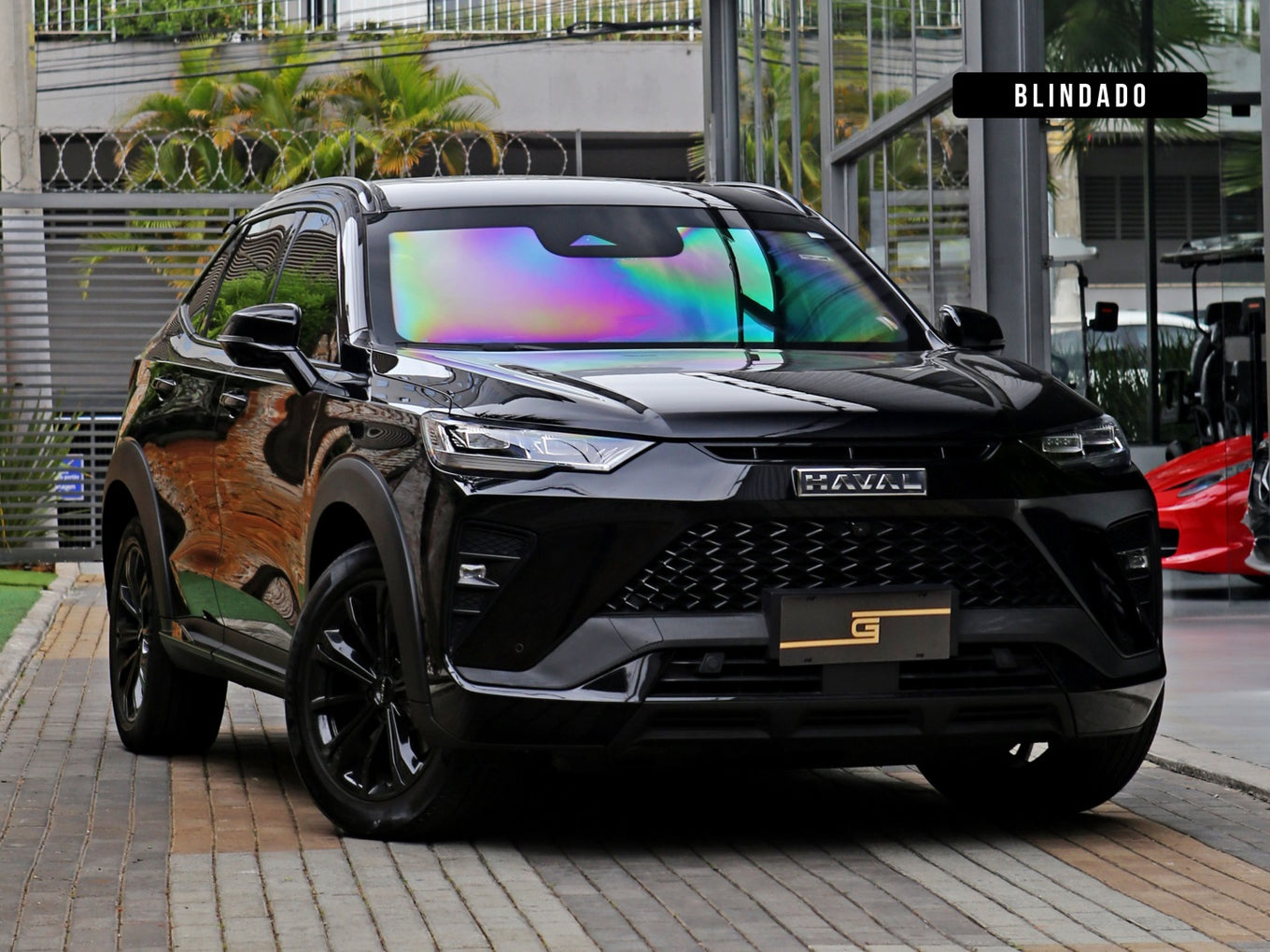 Veículo com blindagem BLC, vidros Crystalgard, rodas de liga leve em black piano, teto solar panorâmico, bancos em couro exclusivos, painel TFT, câmera 360 e carregamento por aproximação.