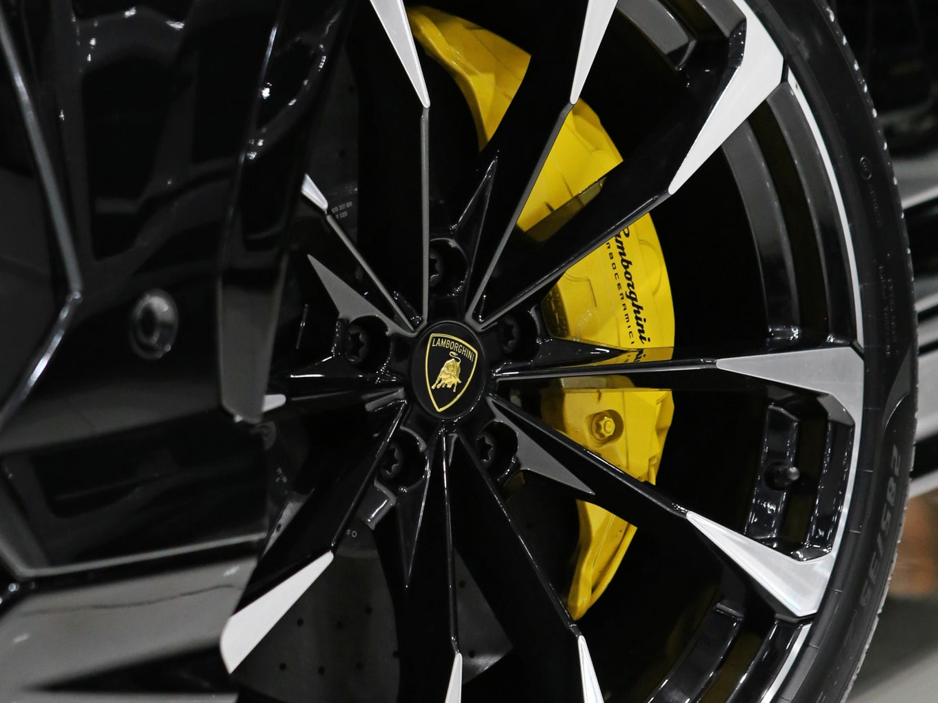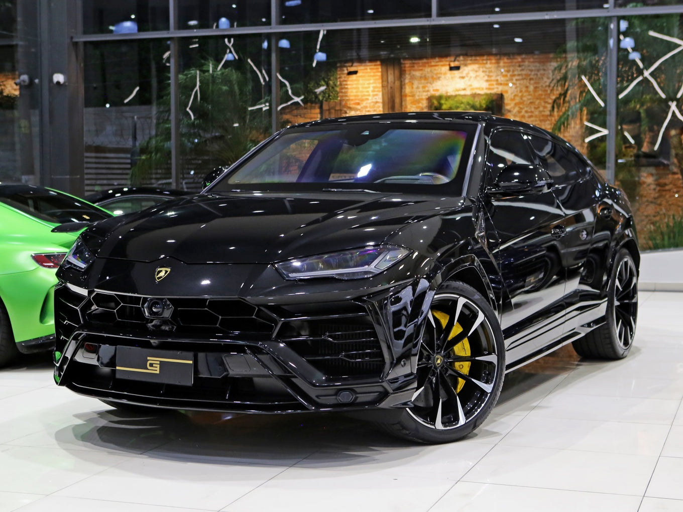Veículo com blindagem BSS, vidros Starglass, rodas de liga leve diamantadas, interno em couro preto com costuras amarelas, teto solar funcional, acabamentos em fibra de carbono e sistema de som Sensonum.
