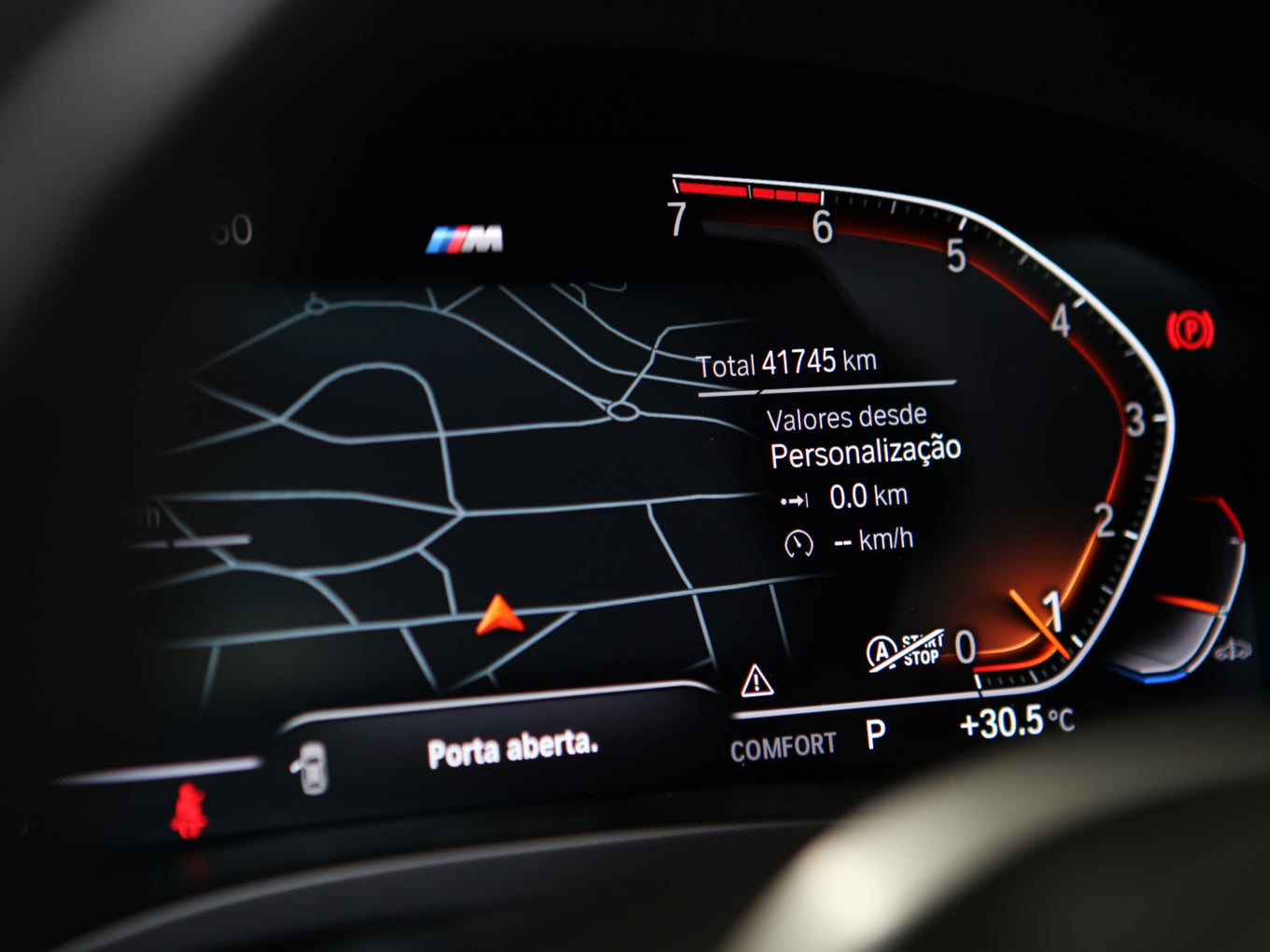 Veículo média monta com blindagem SOU, rodas de liga leve diamantadas, teto solar panorâmico, bancos em couro Mocha, painel TFT e sistema de som Harman Kardon.