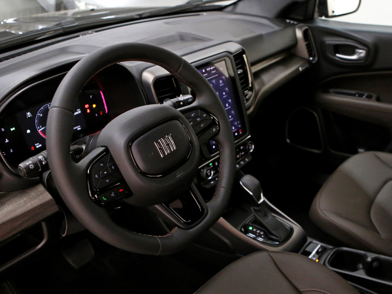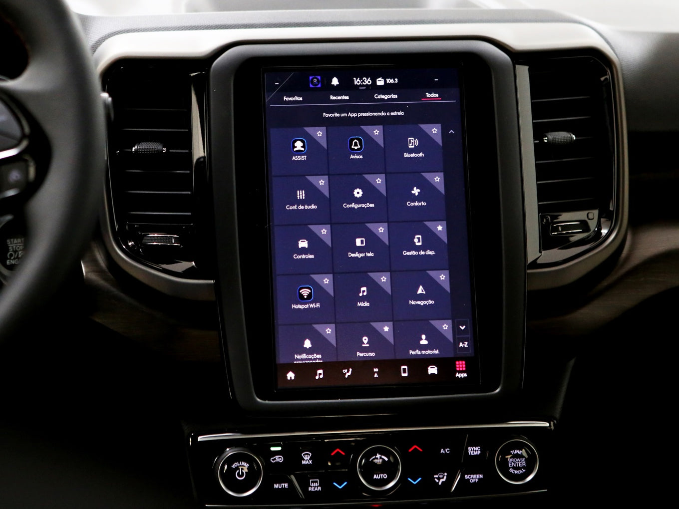 Veículo com pacote ADAS de série, rodas de liga leve diamantadas, faróis Full led, santo antônio e estribos laterais cromados, bancos em couro marrom, painel TFT, ar condicionado digital dual zone, central multimídia de 10 pol. com Apple Carplay e Android Auto.