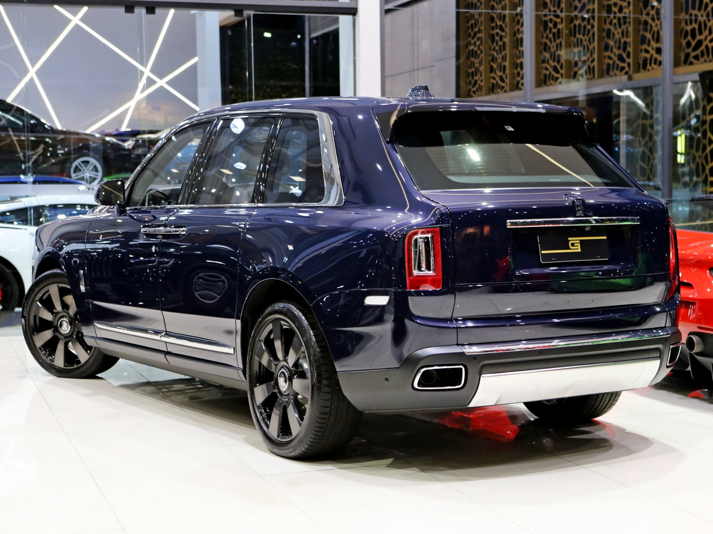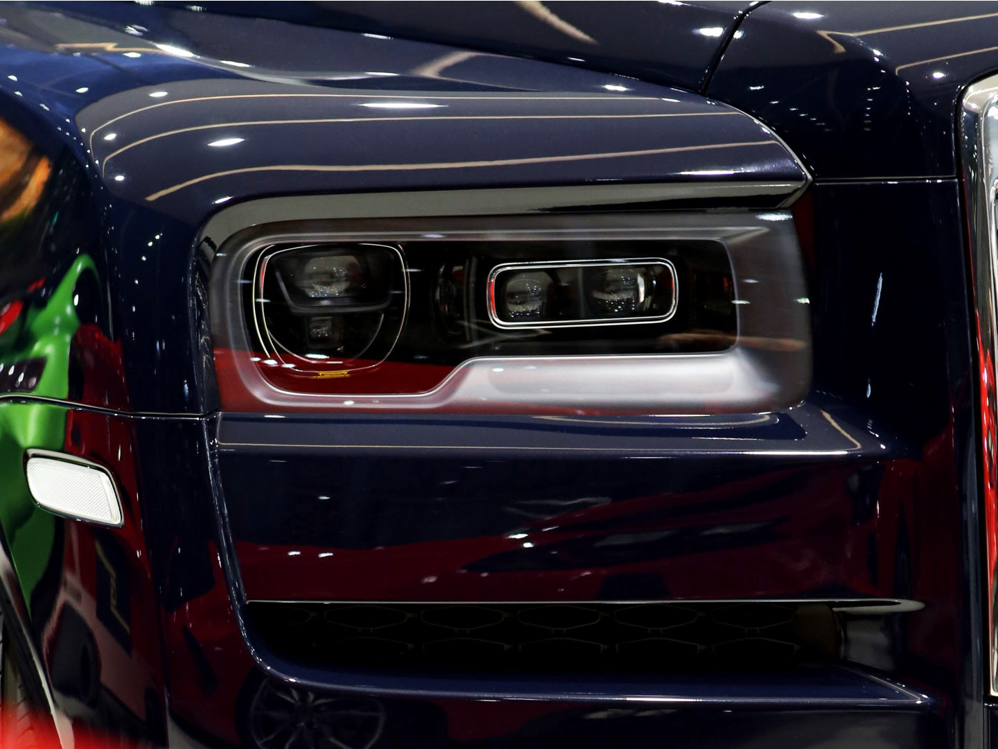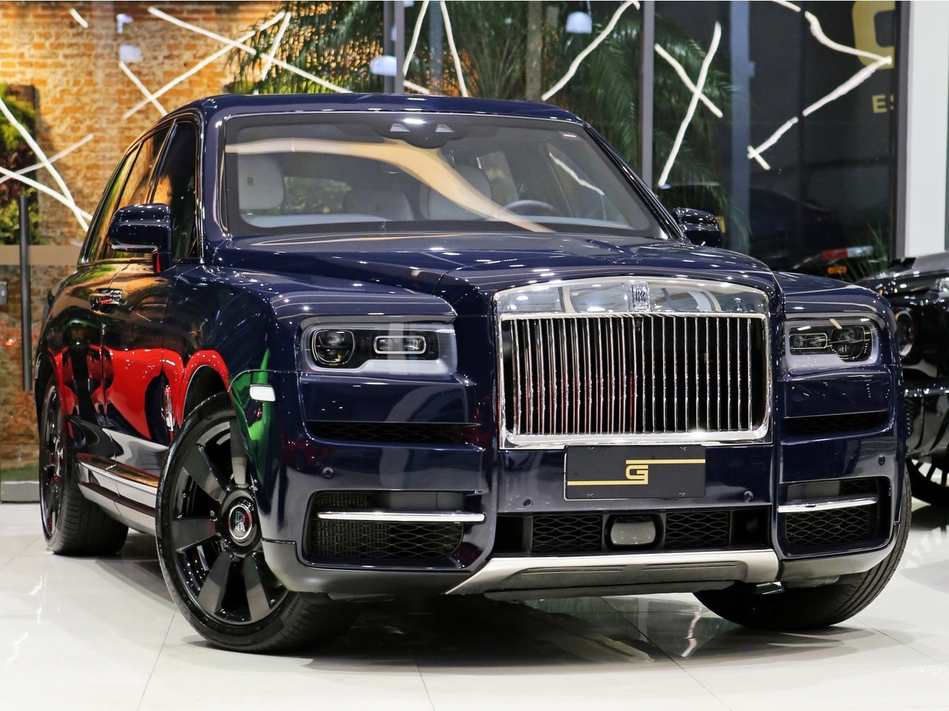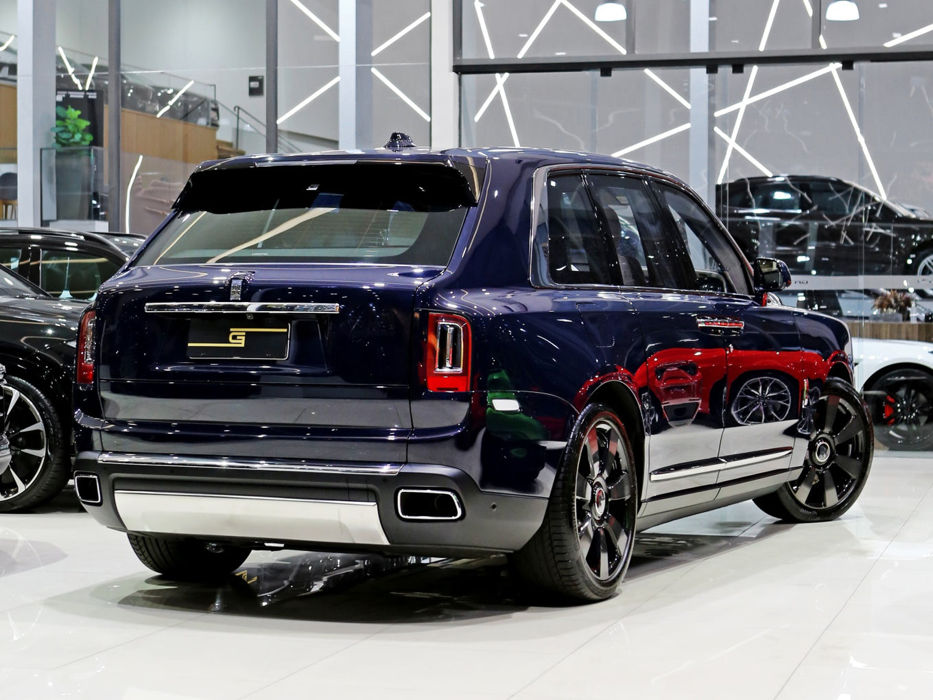 Veículo com blindagem Cart, vidros AGP IB33, rodas de liga leve, suspensão com altura ajustável, interior em couro bicolor gelo e preto, acabamentos em black piano e sistema de som Bespoke Audio.