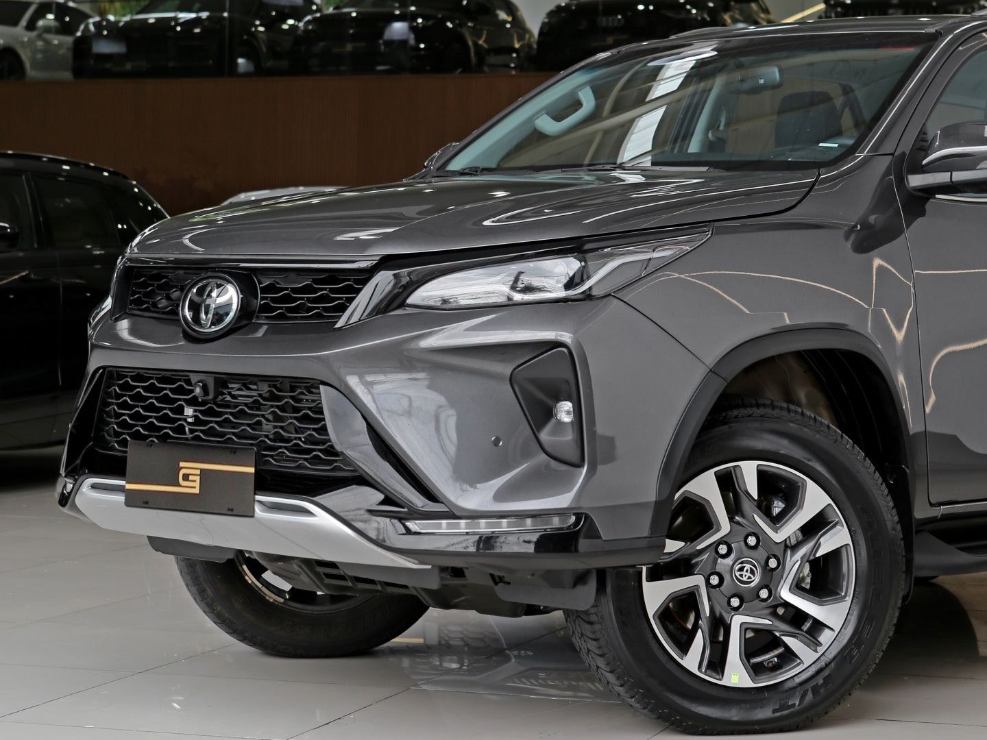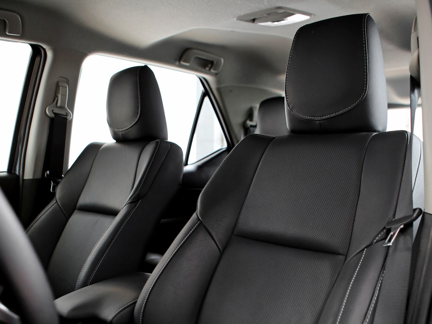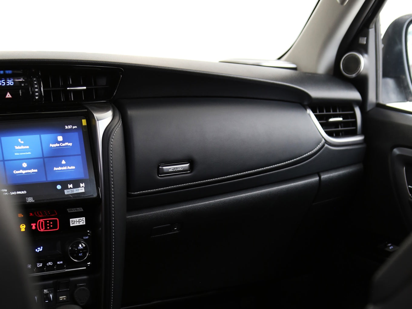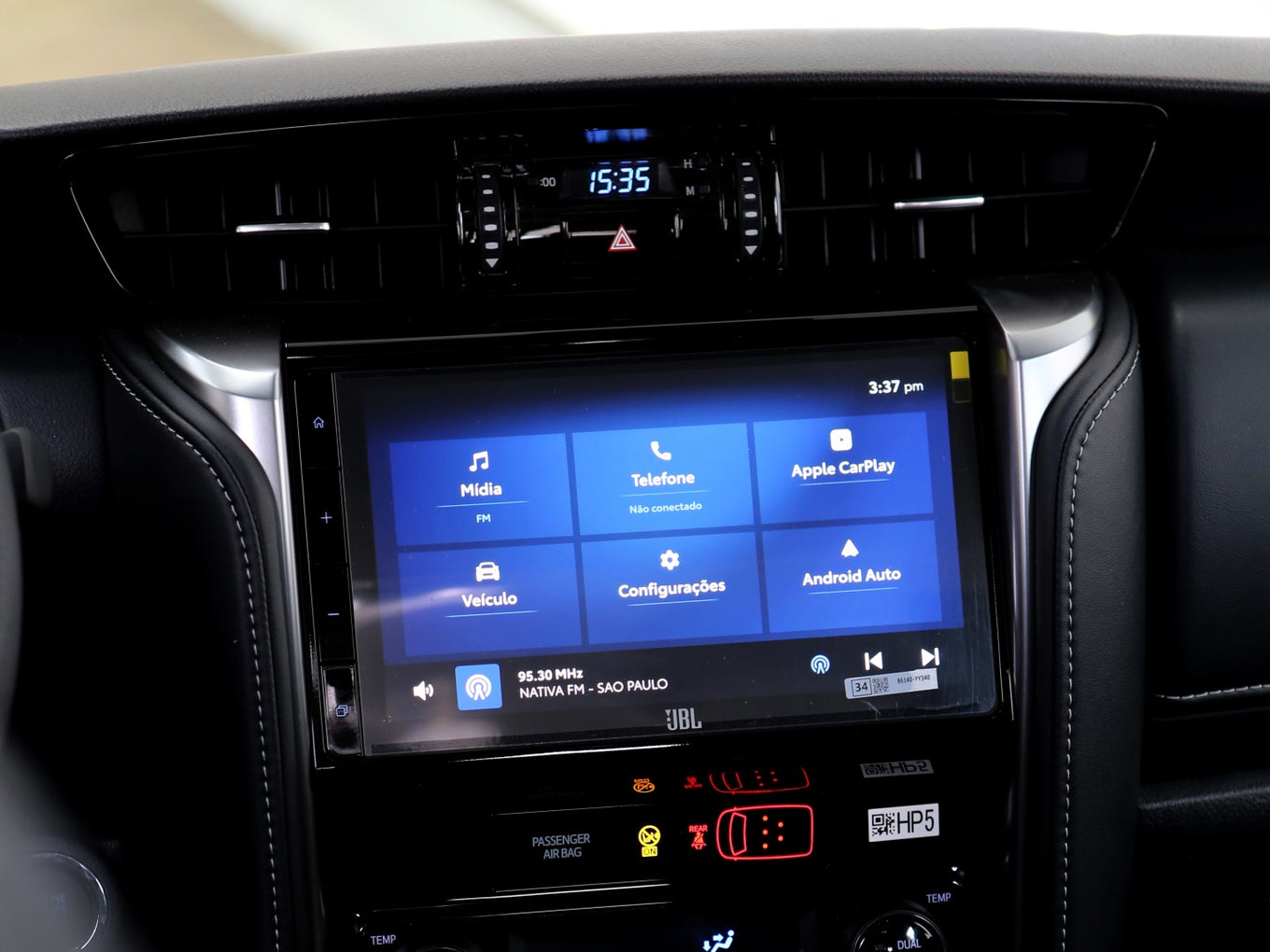 Veículo 7 lugares com rodas de liga leve diamantadas, interior em couro, ar condicionado digital, modo de condução esportivo e sistema de som Jbl.