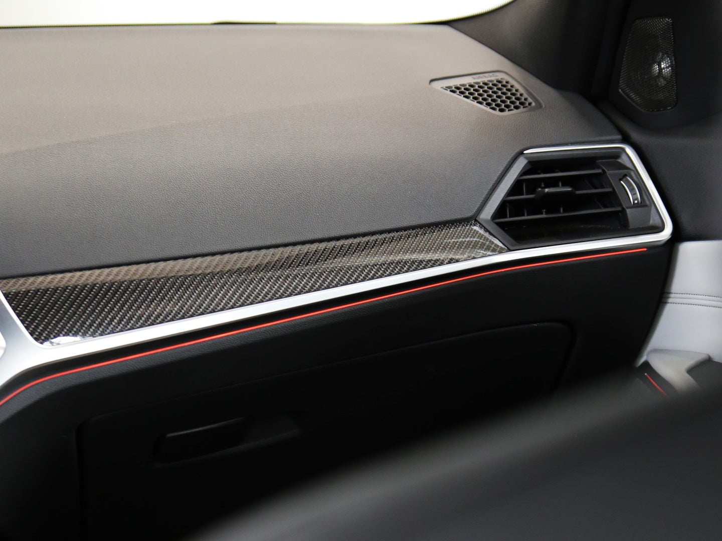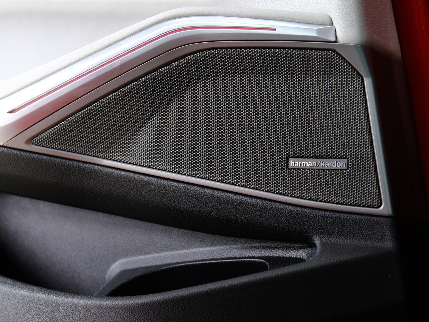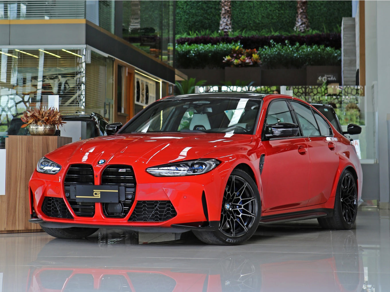 Veículo com rodas de liga leve exclusivas, faróis e lanternas em led, teto fibra de carbono, bancos em couro bicolor Oyster e preto, painel TFT e sistema de som Harman Kardon.
