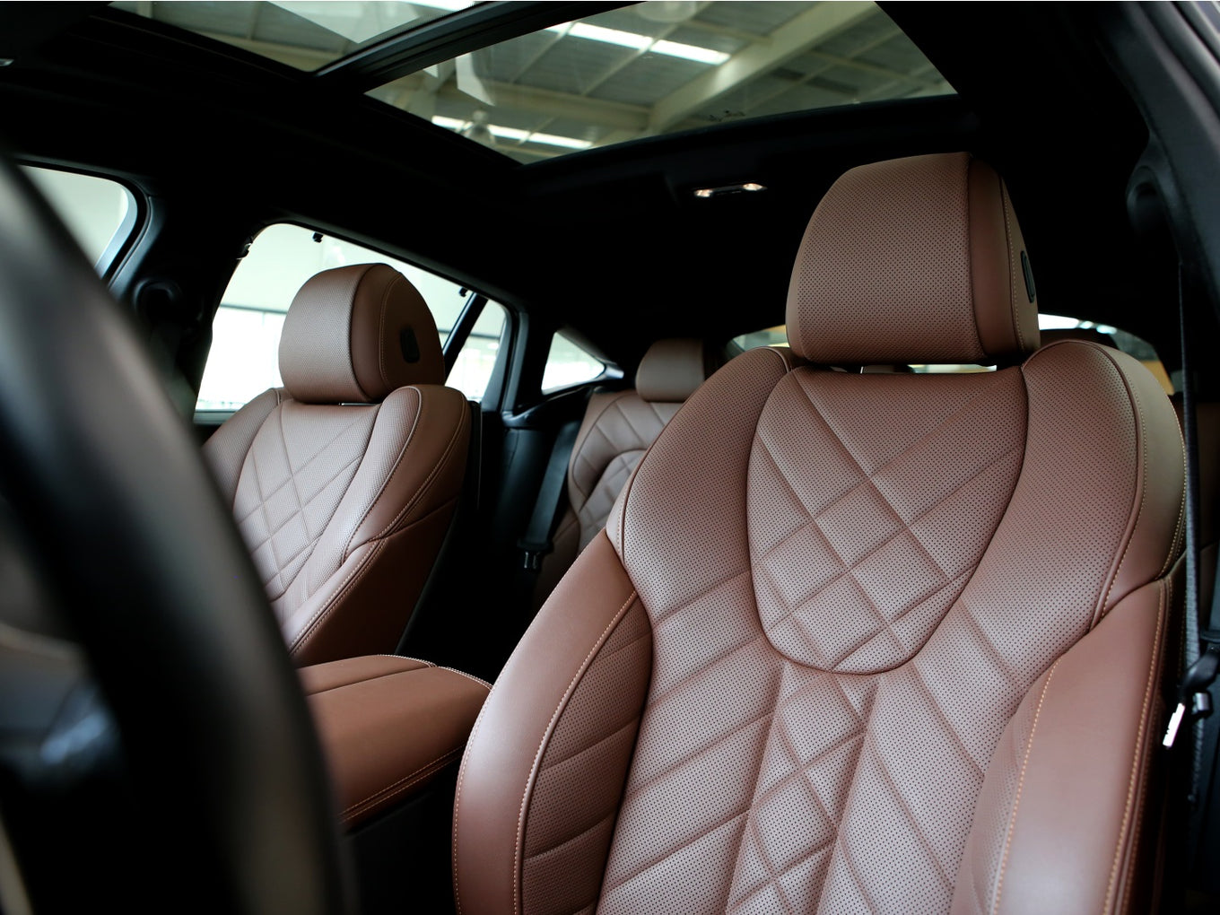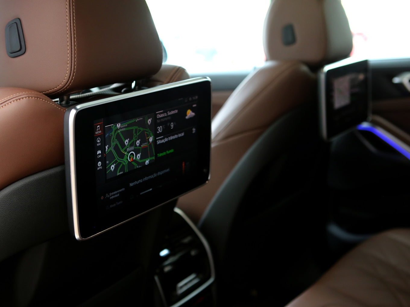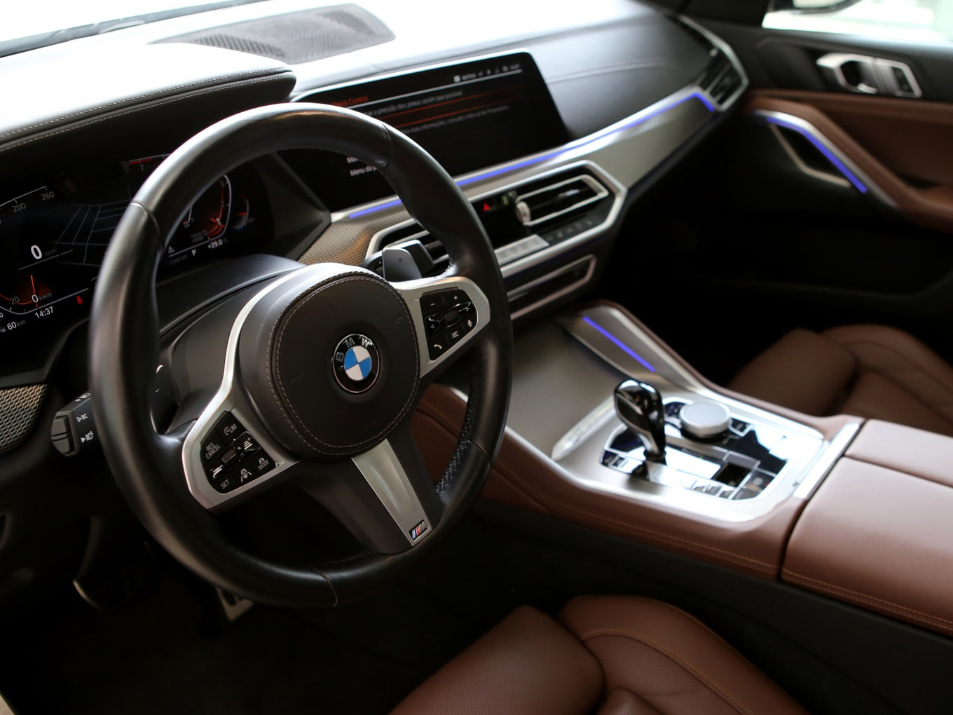 Veículo com rodas de liga leve diamantadas, faróis Bmw Laser, teto solar panorâmico, bancos em couro Mocha com ajustes elétricos, painel TFT e telas de entretenimento traseiras.