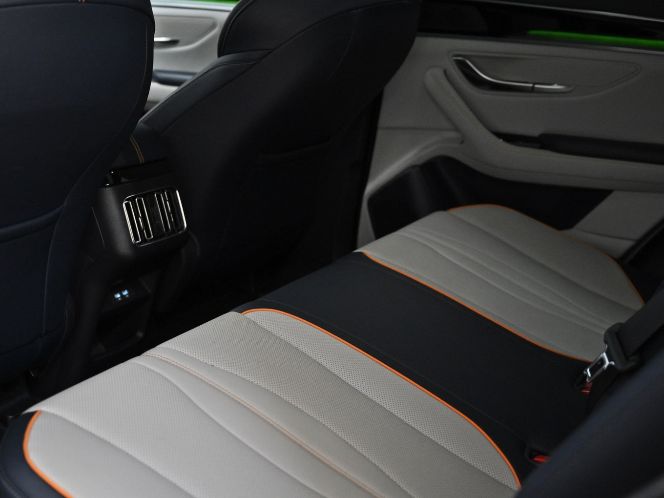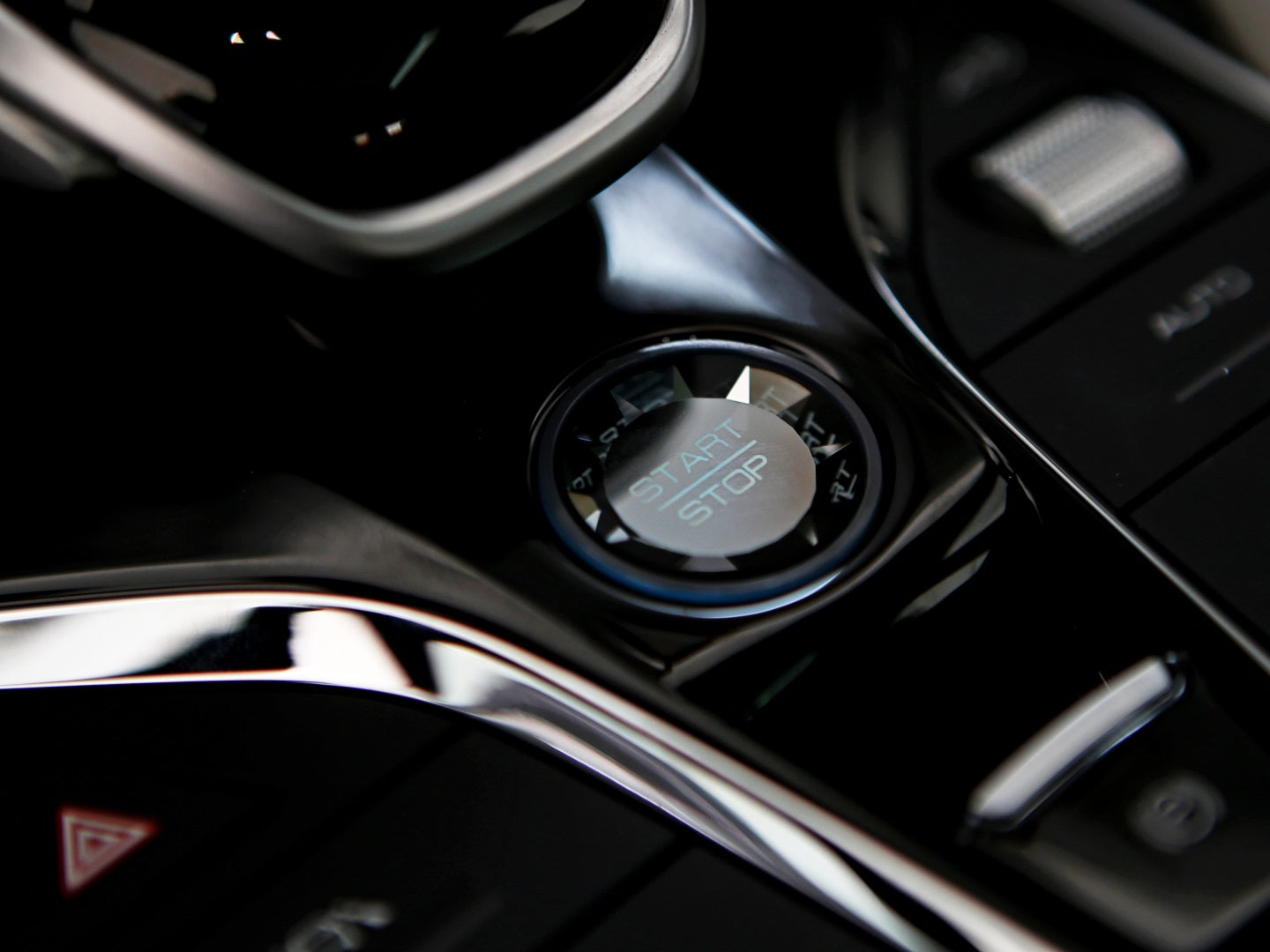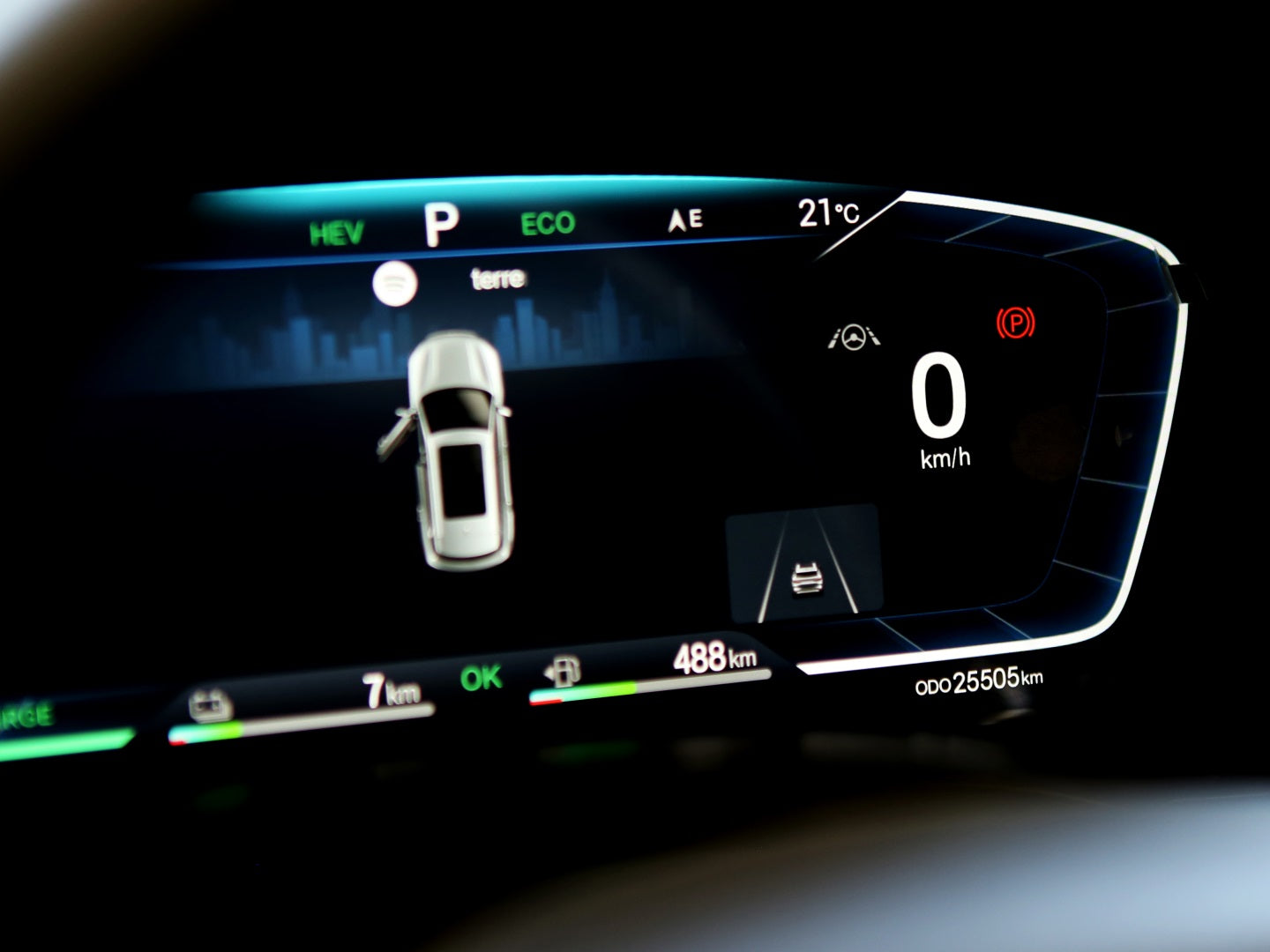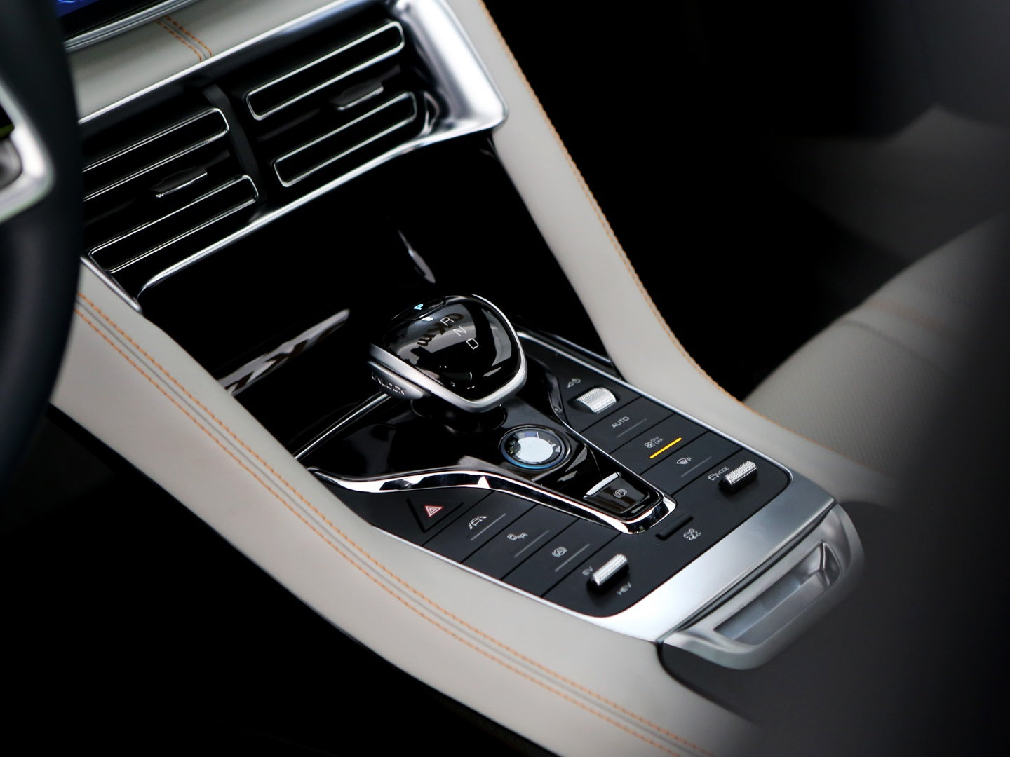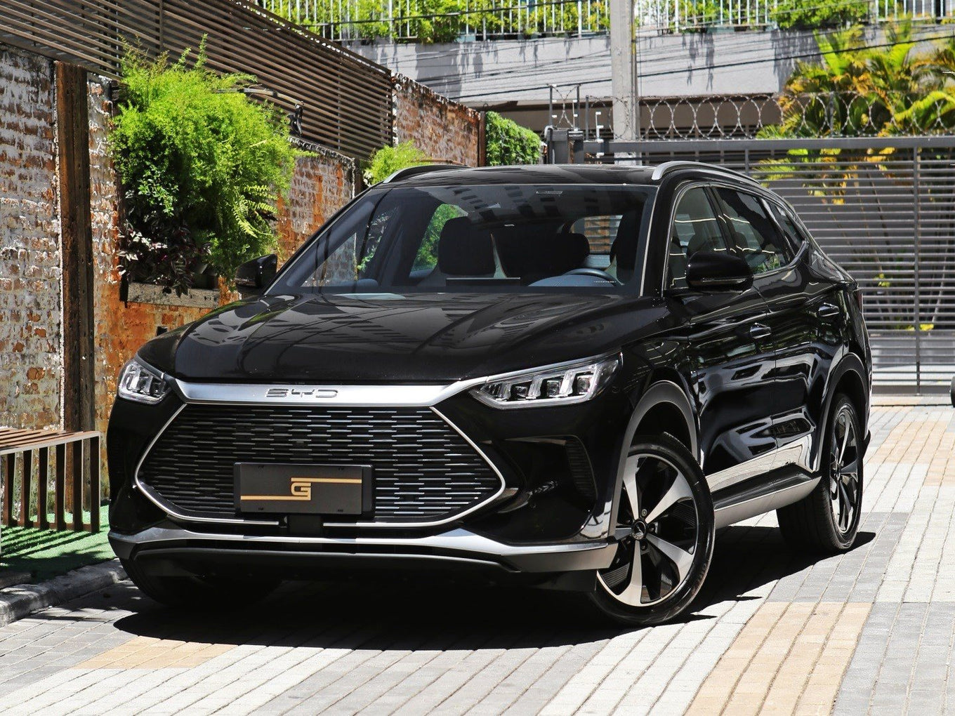 Veículo com rodas de liga leve, faróis e lanternas em led, teto solar, bancos em couro bicolor com ajustes elétricos, painel TFT, ignição start/stop, tela rotativa de 15 polegadas e carregamento por aproximação.