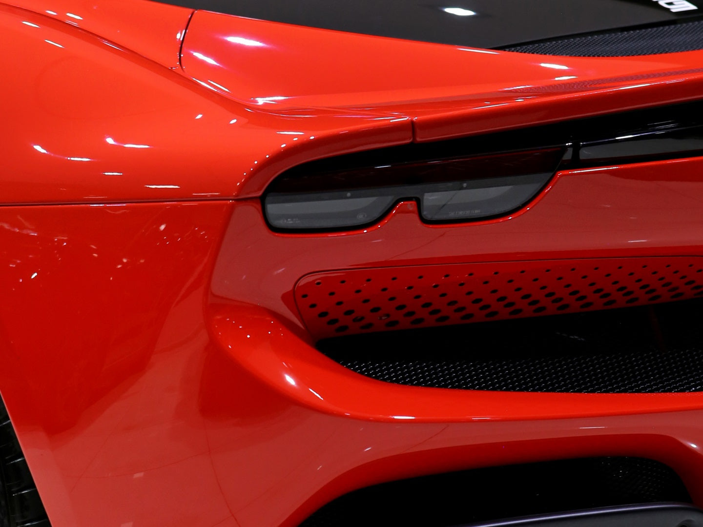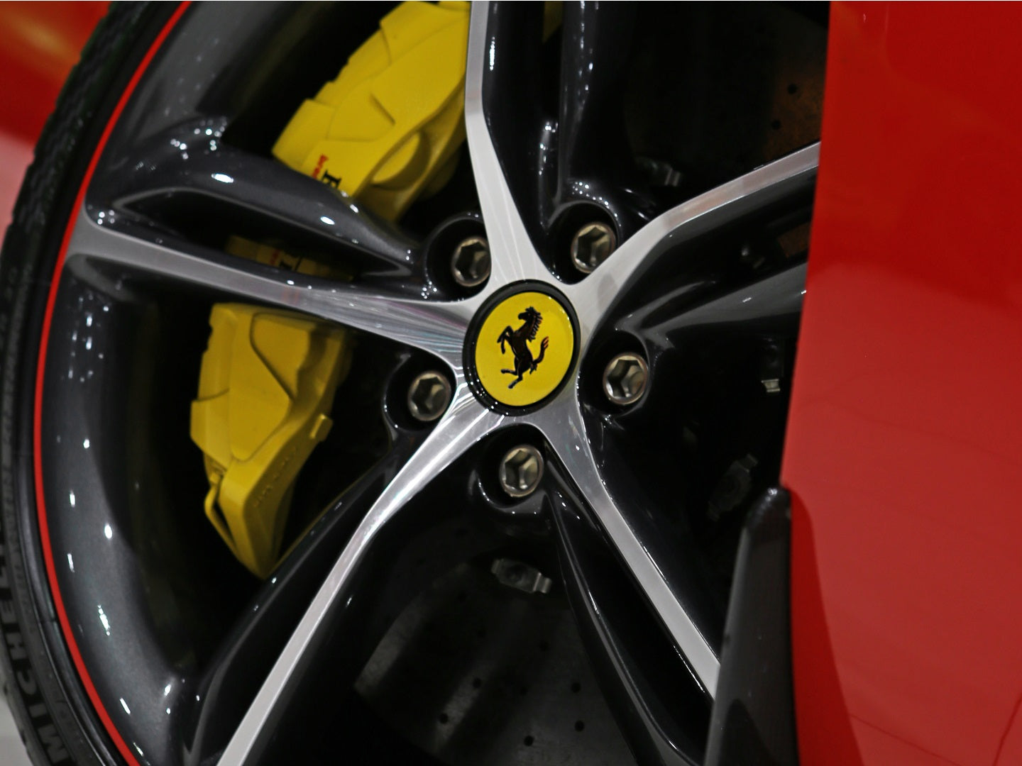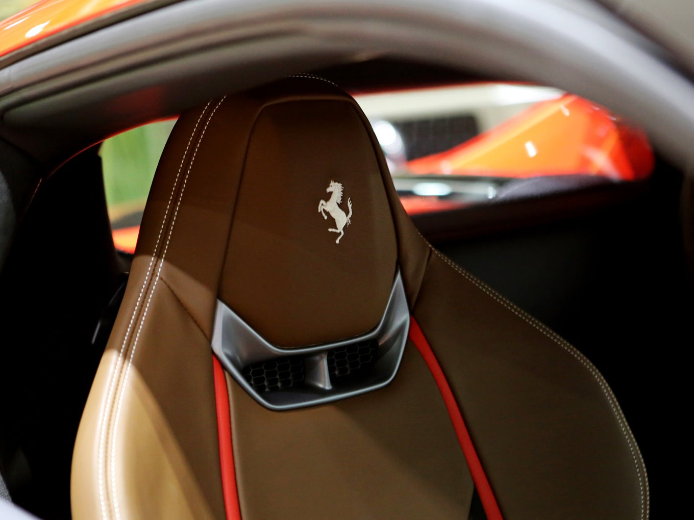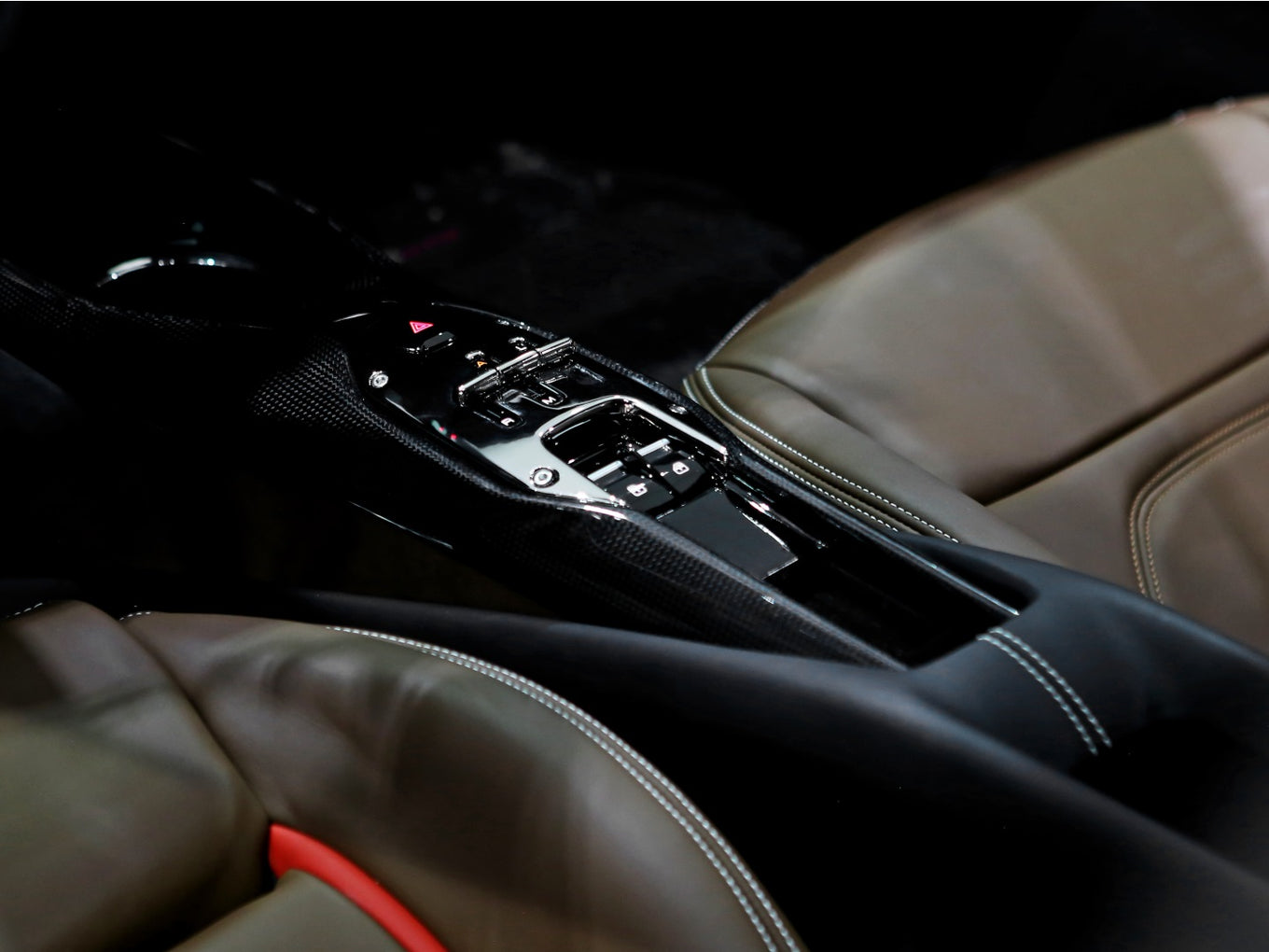 Veículo de importação oficial, na cor Rosso Scuderia com rodas de liga leve diamantadas, interior Terra Bruciata e preto com acabamentos em fibra de carbono.