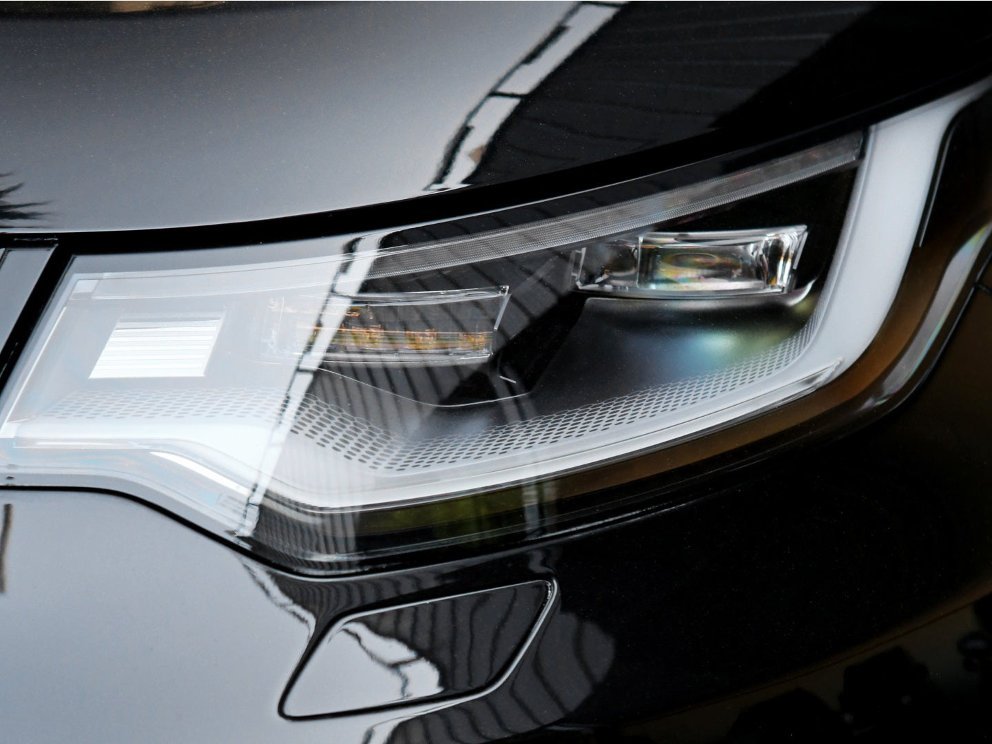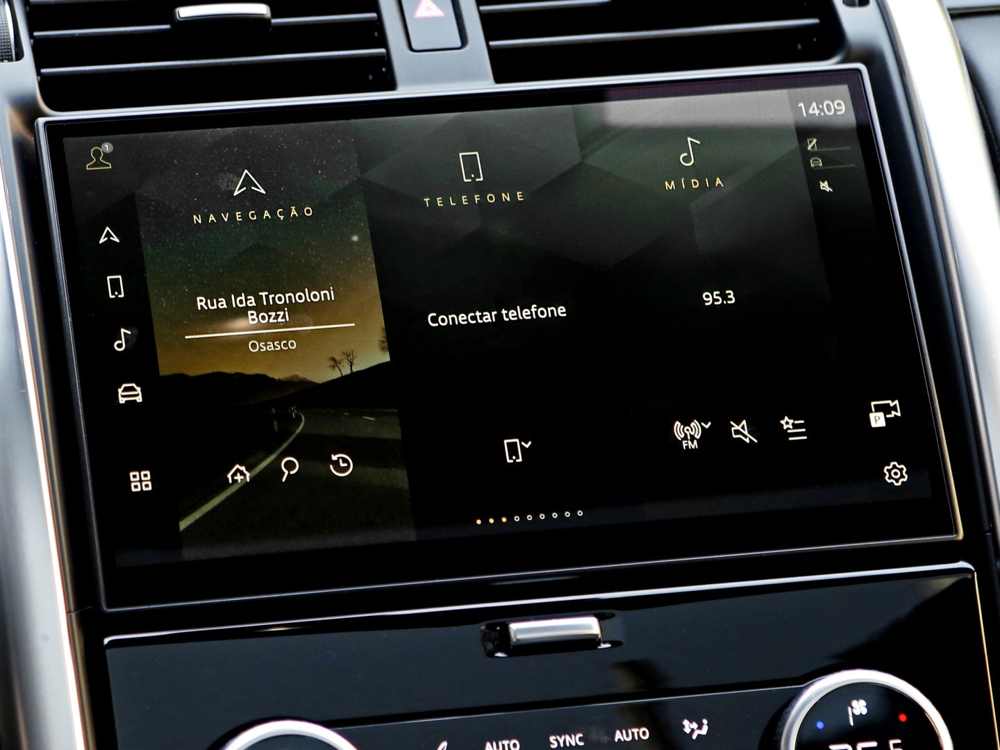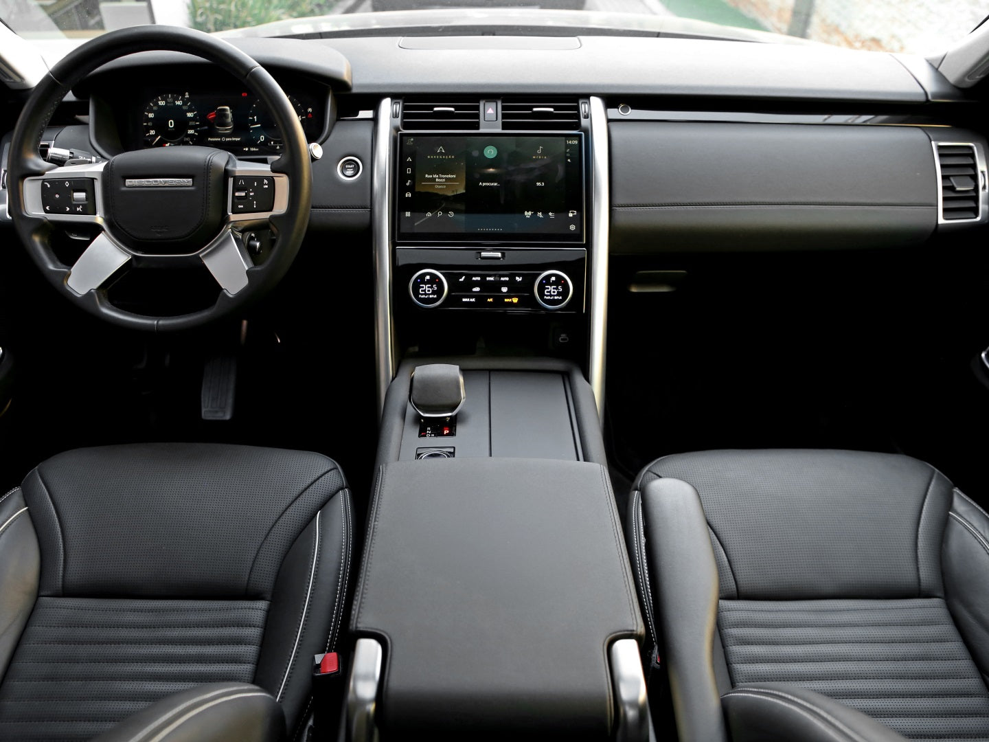 Veículo com rodas de liga leve, faróis em led, teto solar duplo, bancos em couro, painel TFT, ignição start/stop, carregamento por aproximação e sistema de som Meridian.