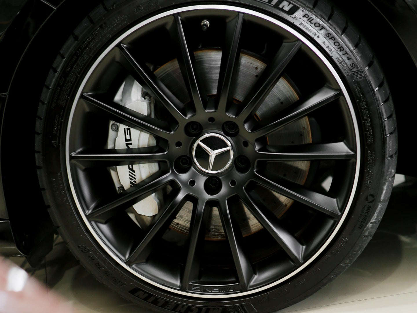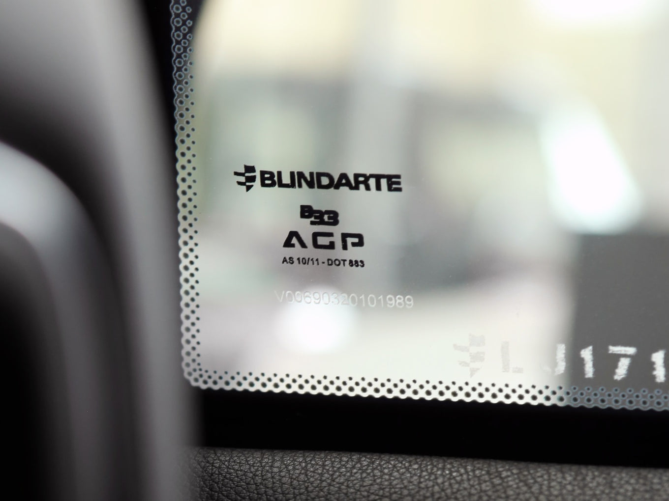 Veículo com blindagem Blindarte, vidros Agp, rodas em preto acetinado, teto solar funcional, bancos em couro e alcântara, painel TFT e sistema de som Burmester.