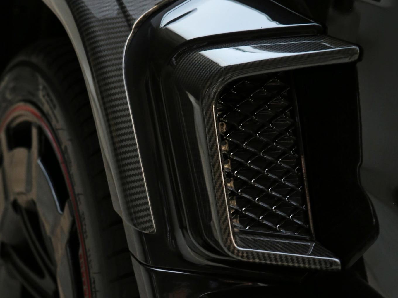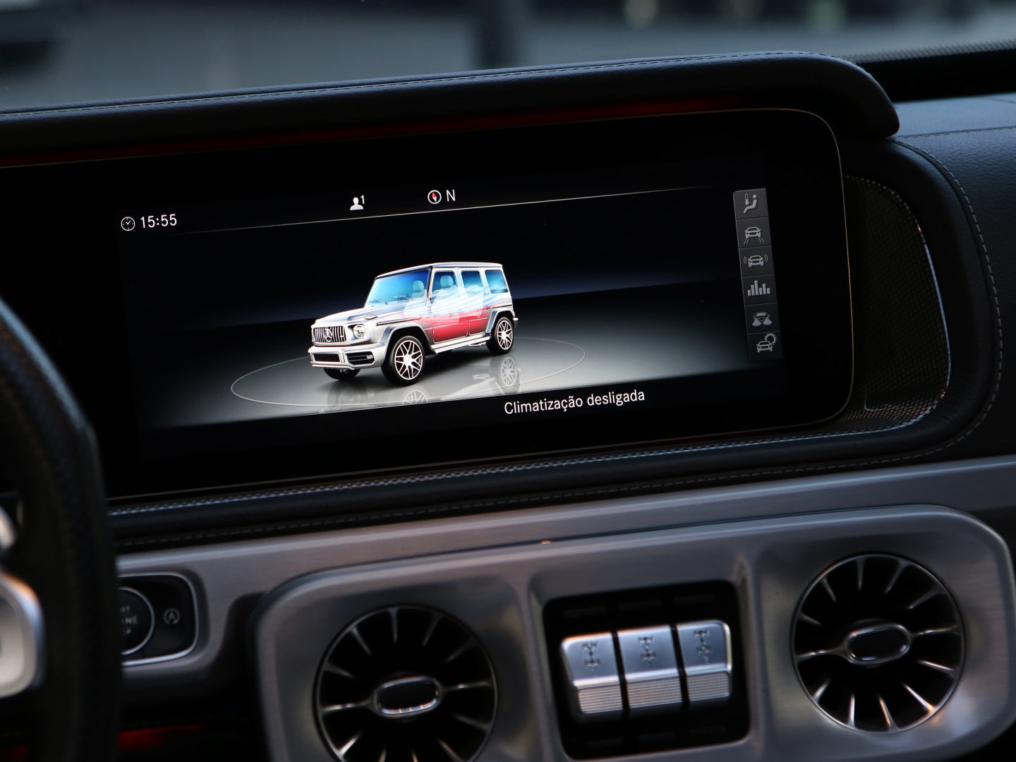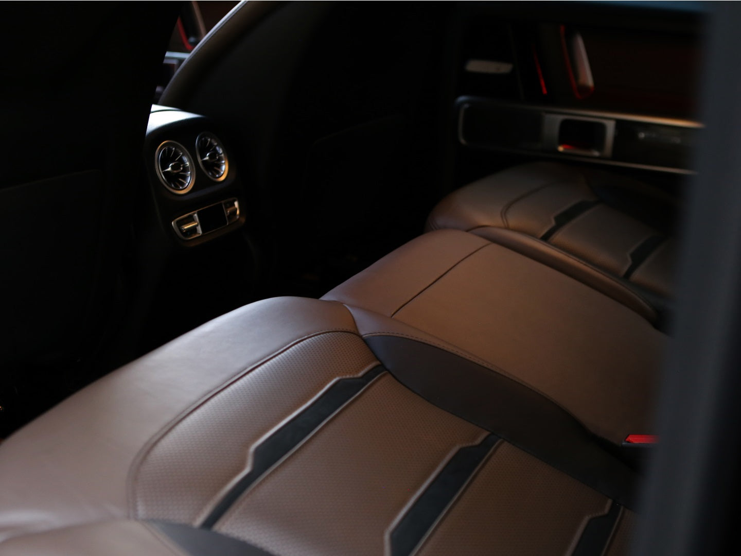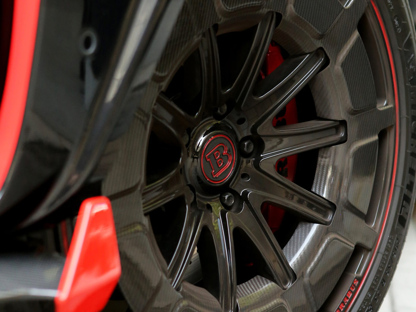 Veículo blindado Carbon, vidros AGP com Kit Brabus Rocket Edition 900, rodas exclusivas, acabamentos em fibra de carbono, teto solar, bancos em couro bicolor Mocha e preto, painel TFT e sistema de som Burmester.