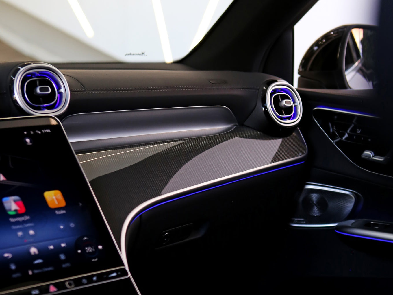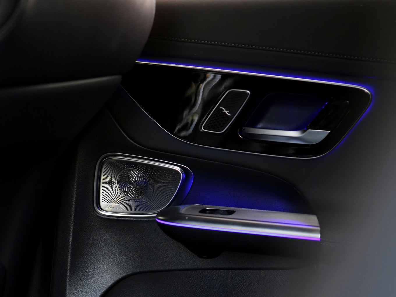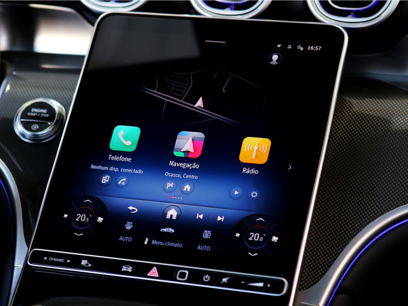 Veículo com rodas de liga leve diamantadas, teto solar panorâmico, bancos em couro, acabamentos internos em carbono e black piano, painel TFT, display central 11 polegadas e sistema de som Burmester.