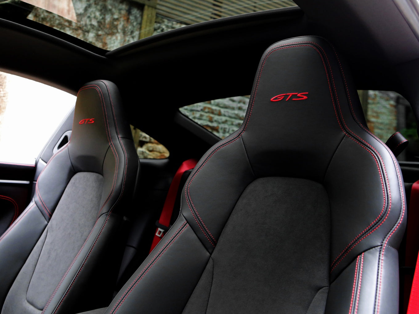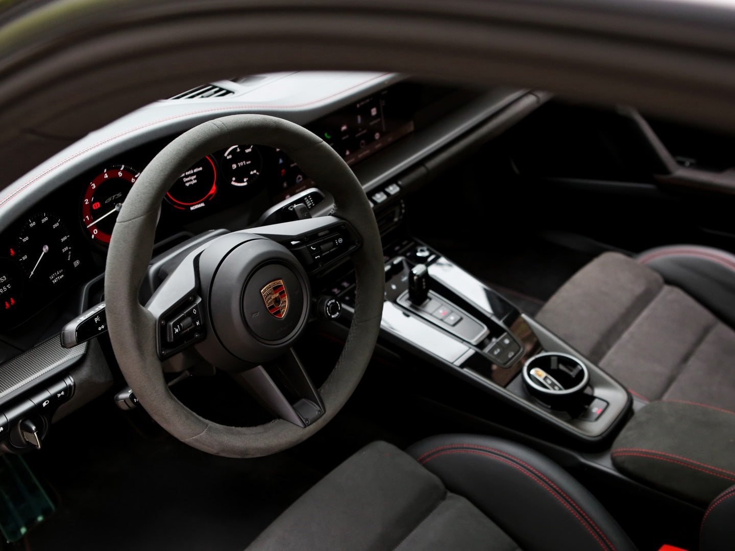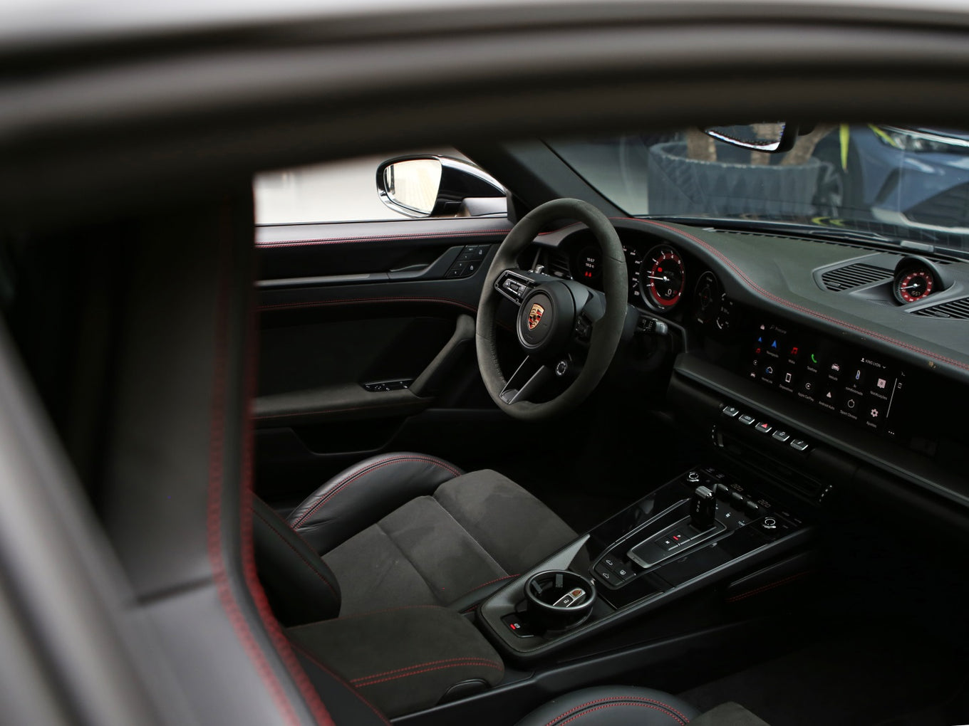 Veículo com PPF Full, Stage 2, Aerokit, rodas de liga leve em preto acetinado, teto solar em vidros, bancos em couro e Race-Tex com costuras vermelhas, pacote Sport Chrono e sistema de som Bose.