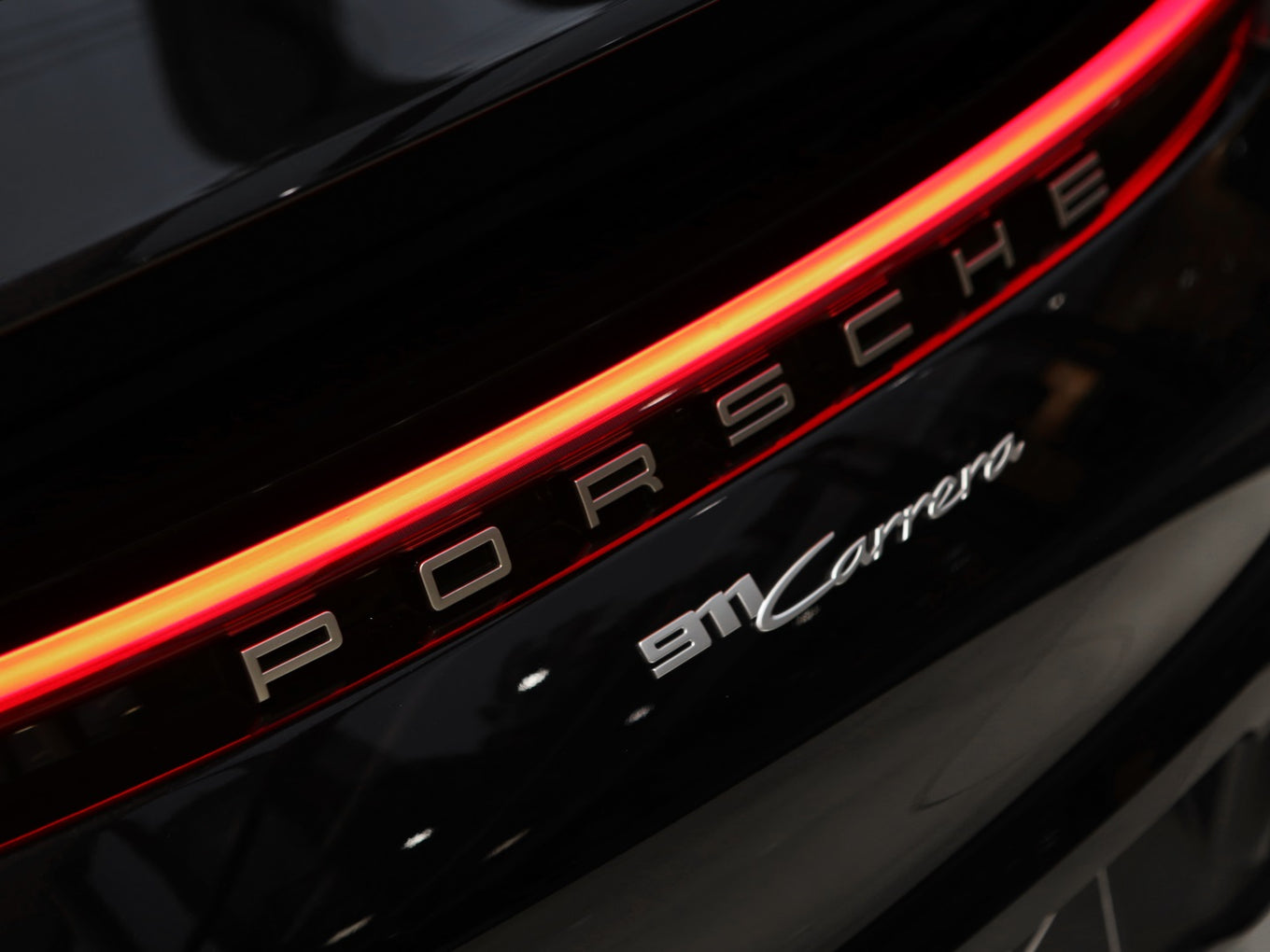 Veículo com rodas Carrera, teto solar em vidro, pacote Sport Chrono, interior em couro bege Mojave, seletor de escapamento, banco 18 vias e sistema de som Bose.