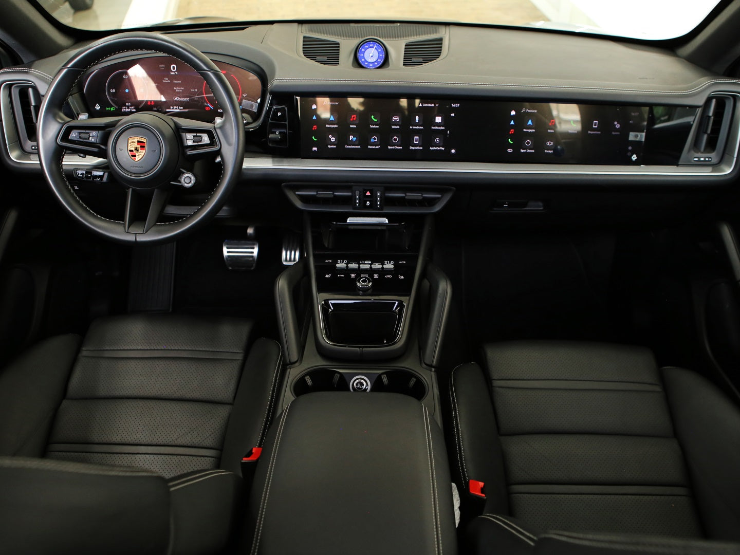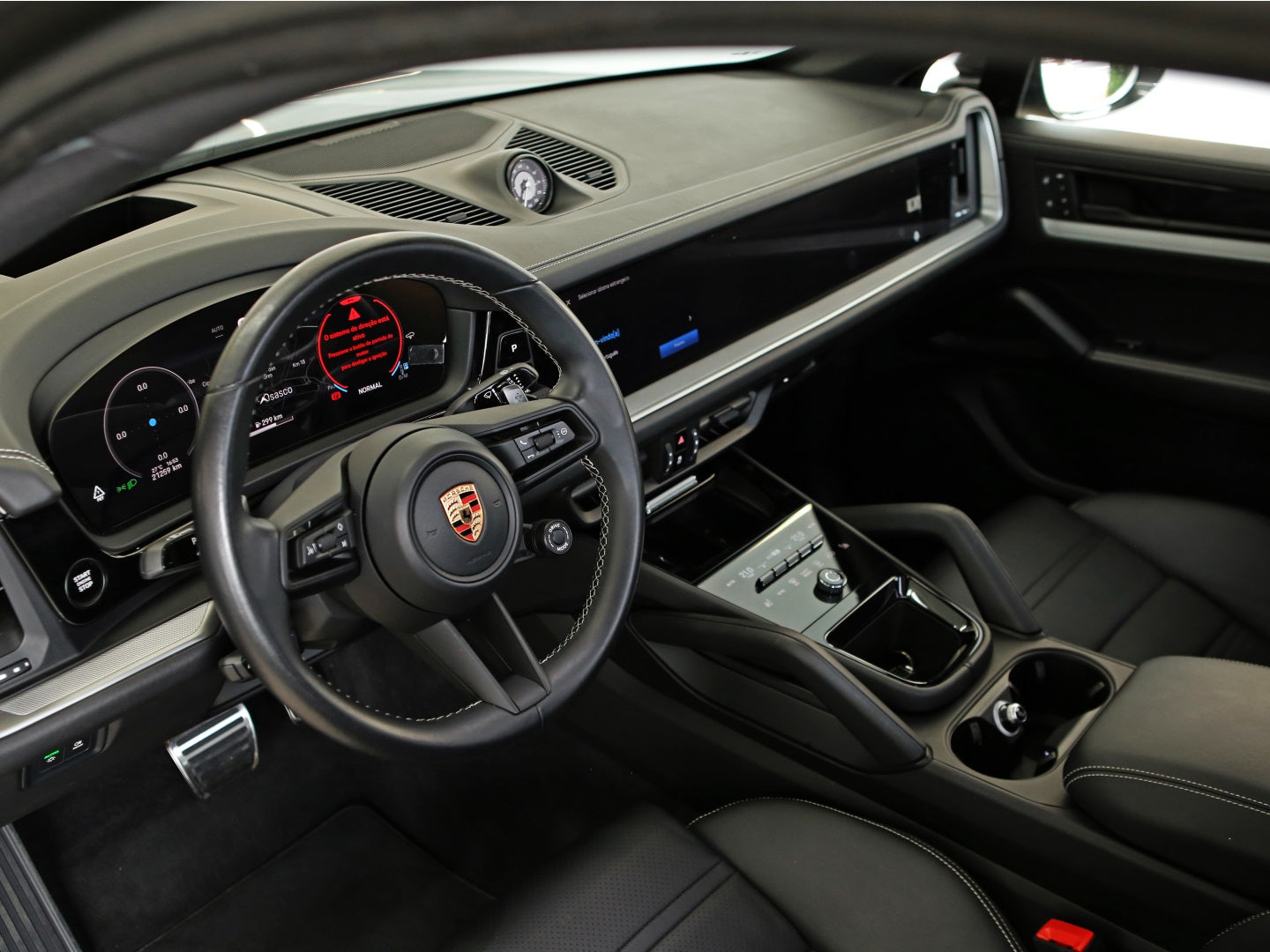 Veículo com blindagem Cart, vidros Agp, rodas de liga leve diamantadas, teto solar panorâmico, interior em couro, display do passageiro, pacote Sport Chrono e sistema de som Bose.