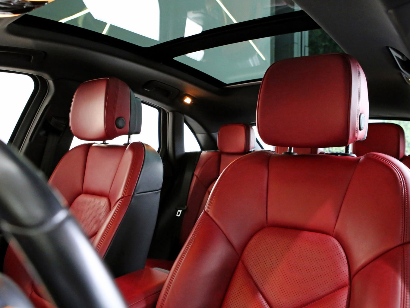 Veículo com blindagem Cart, vidros Agp, rodas GT design, teto solar panorâmico, head-up display, bancos em couro bordô e sistema de som Bose.