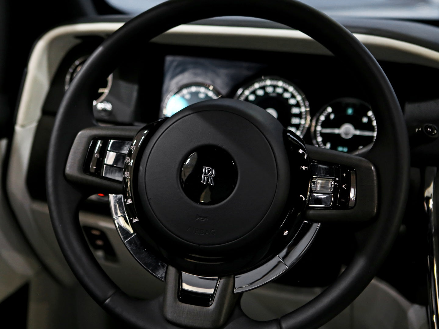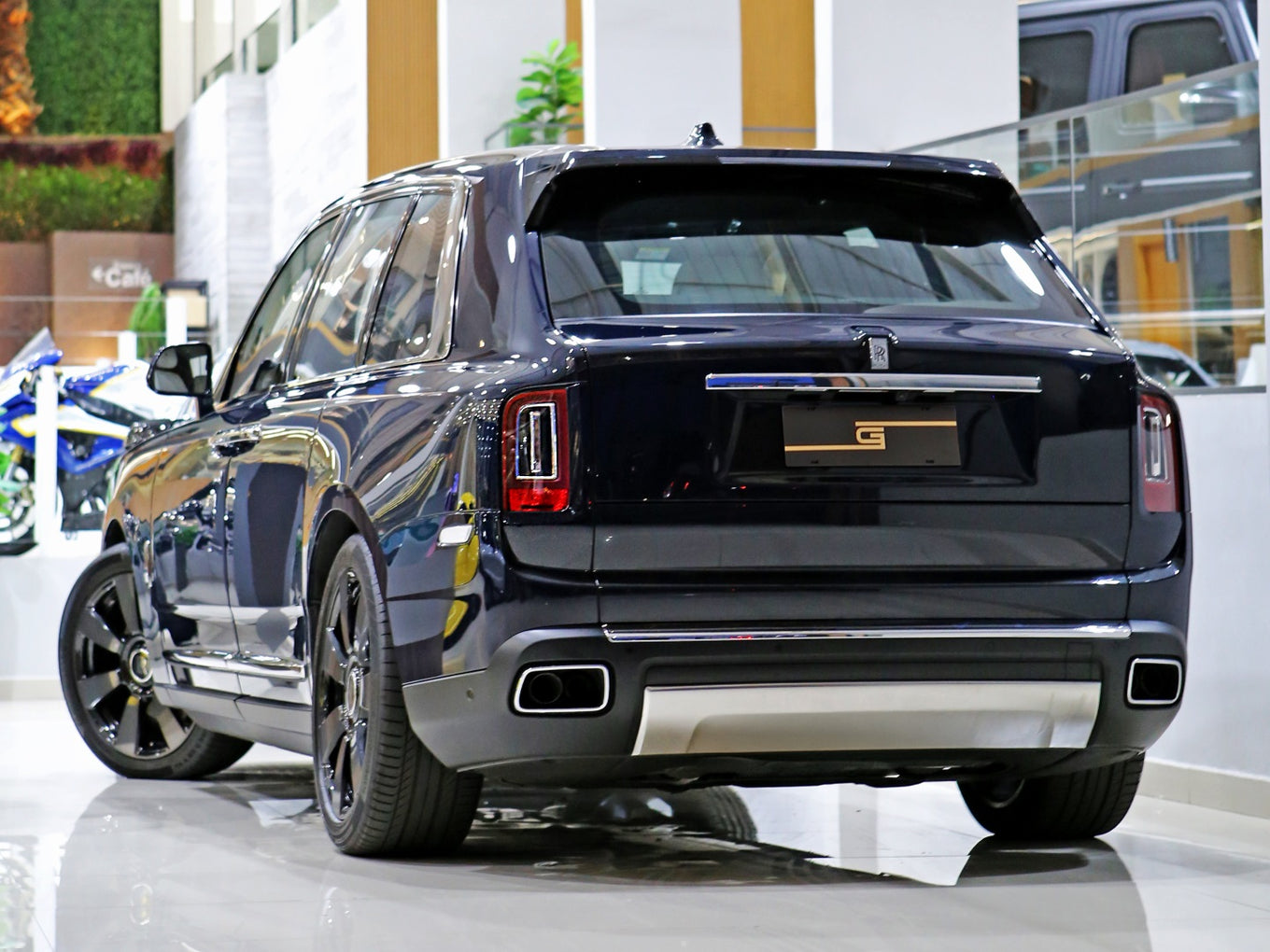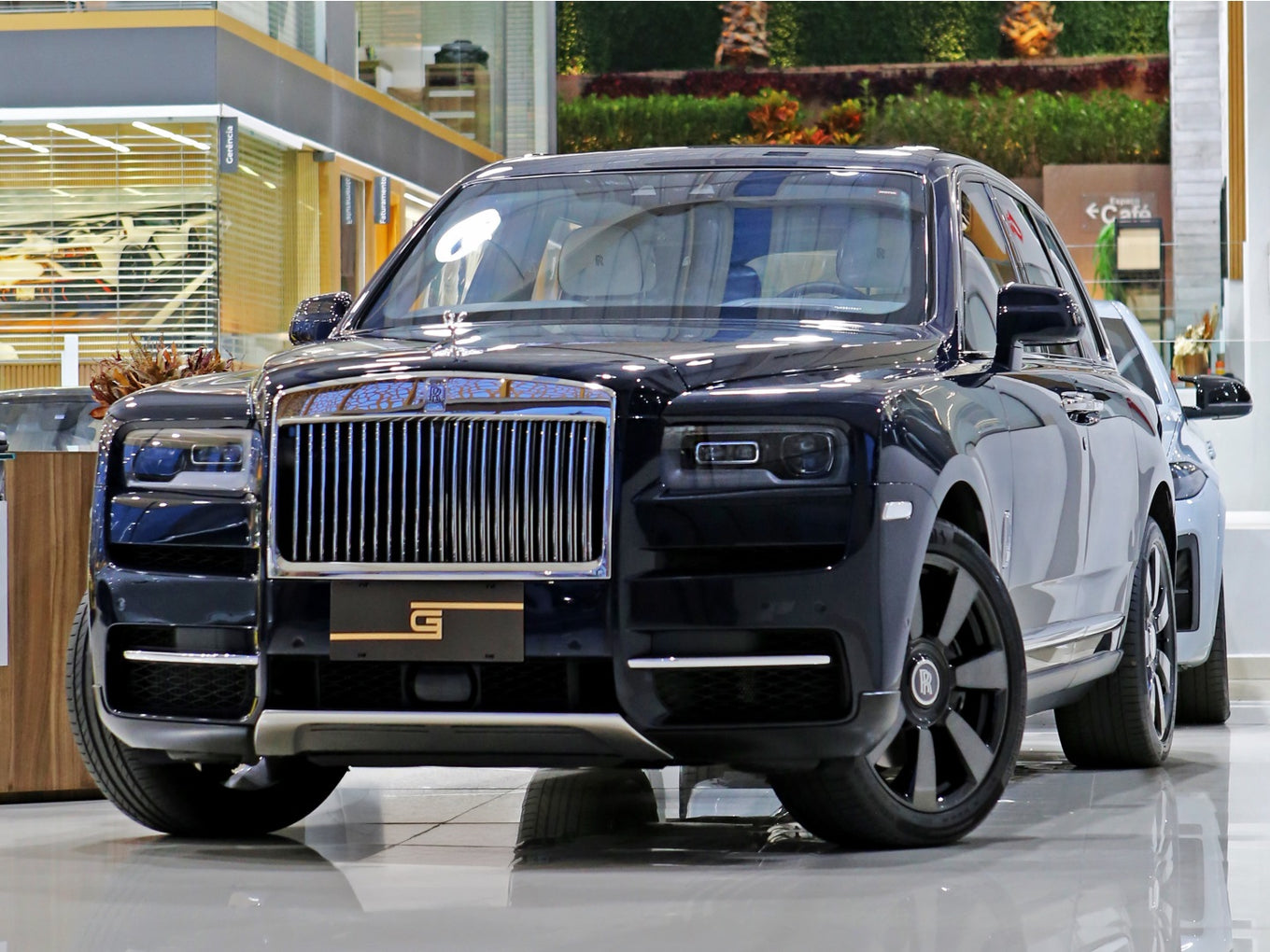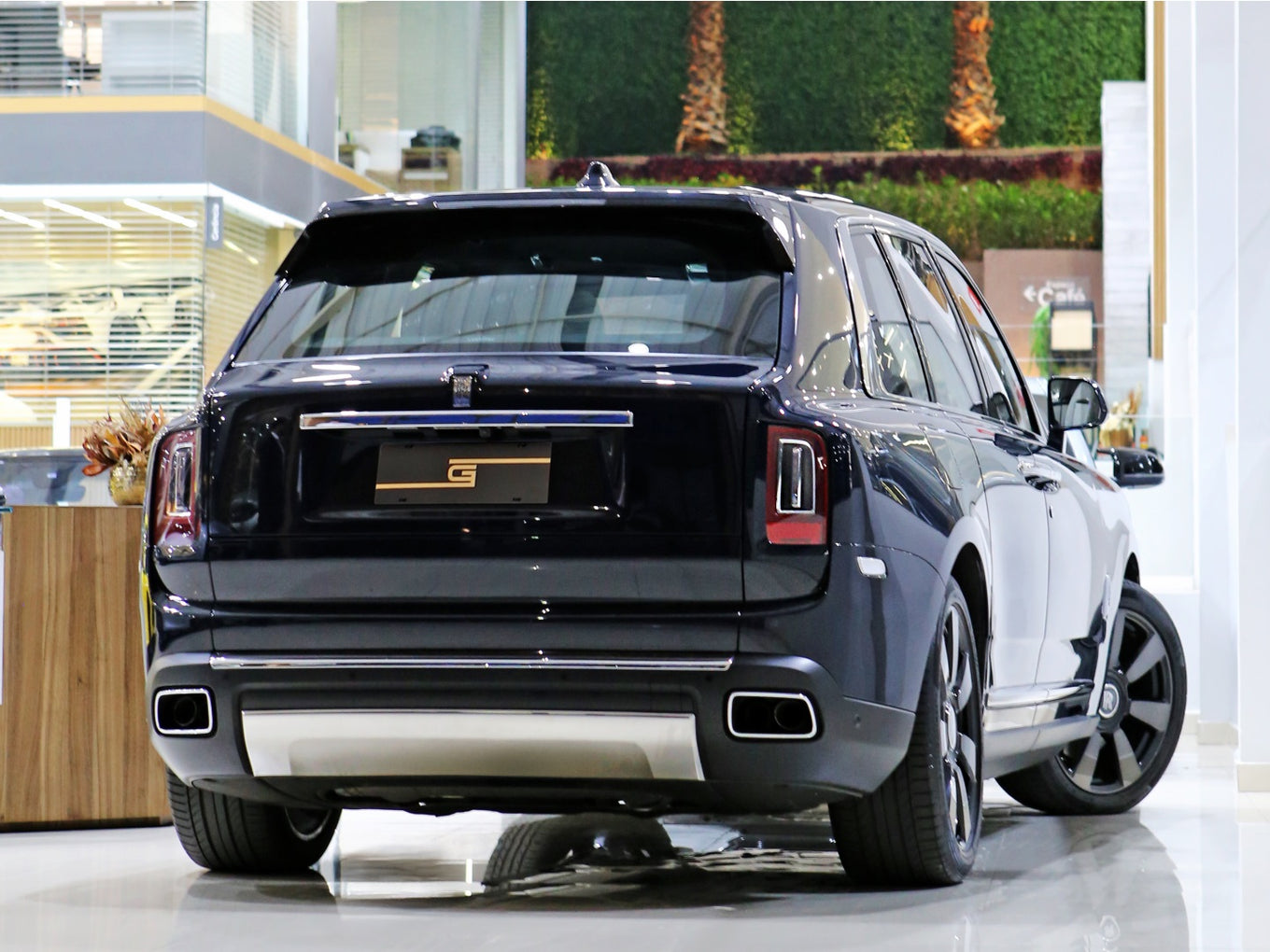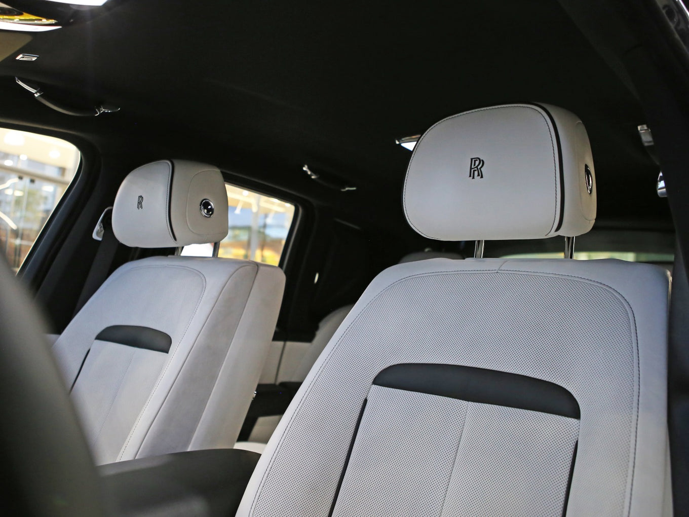 Veículo com blindagem Cart, vidros AGP IB33, rodas de liga leve, suspensão com altura ajustável, interior em couro bicolor gelo e preto, acabamentos em black piano e sistema de som Bespoke Audio.